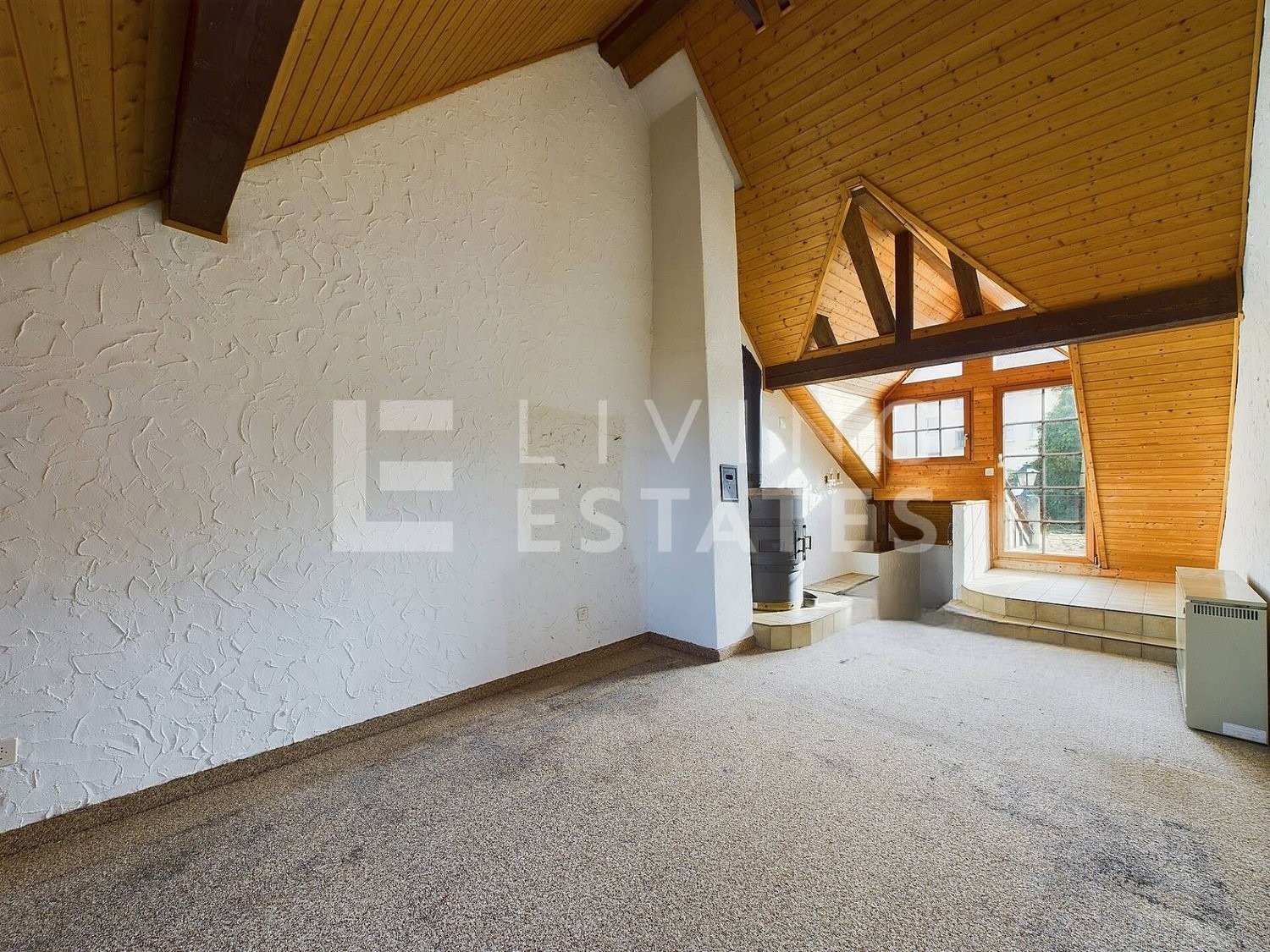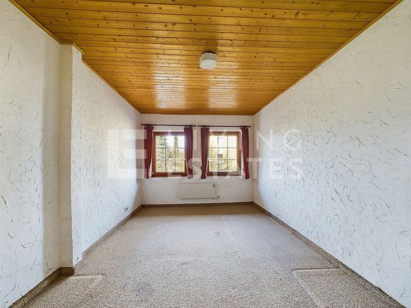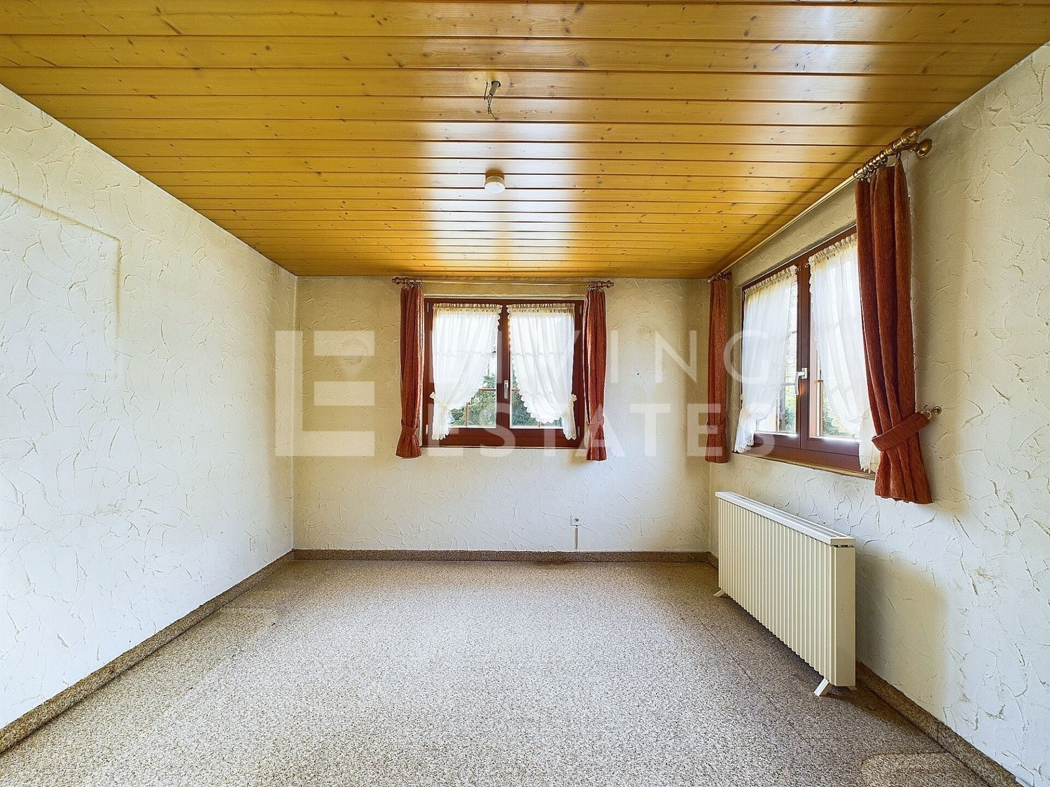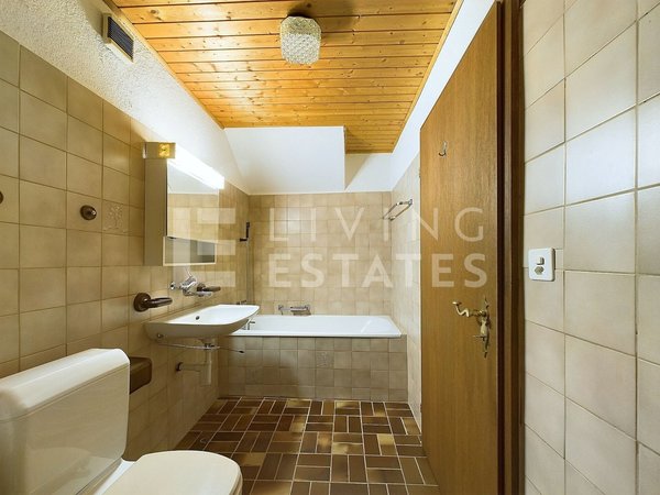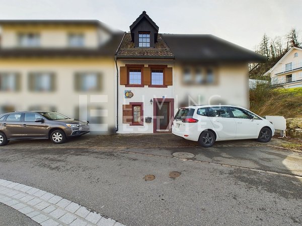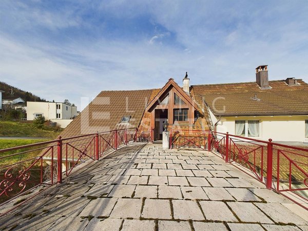 Der grosse Eingangsbereich mit langgezogenem Gang empfängt Sie im Haus '' Zur blauen Traube ''. Am Ende des Ganges befindet sich der Treppenaufgang, eine kleine Nasszelle mit Dusche und Wc und das erste Schlafzimmer mit direktem Zugang zum kleinen Garten mit Sitzplatz und Gartenhäuschen. Die Waschküche und ein Abstellraum befinden sich ebenfalls auf dieser Etage. Das Obergeschoss beherbergt die teilweise offene Küche mit grossem Esszimmer und ein weiteres Schlafzimmer mit sep. Badezimmer und punktet mit einer Raumhöhe von ca. 2.45m. Das Dachgeschoss ist ein echtes Highlight und kann ideal als Wohnbereich genutzt werden. Nebst einem Schwedenofen und einer enormen Raumhöhe punktet diese Etage mit einer grossen Dachterrasse.