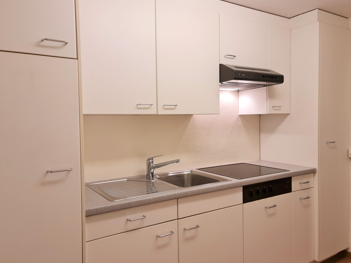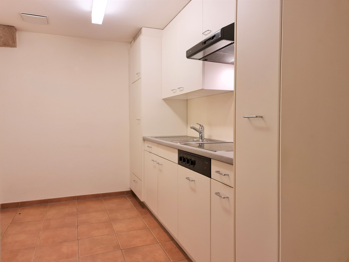 Ausbau: Schöne, helle Räume mit Plattenböden. Vollwertig ausgestattete Küche mit Glaskeramikherd, grossem Kühlschrank, Dampfabzug und Einbauschränken. Sogar ein kleiner Tisch hat Platz in der Küche.
