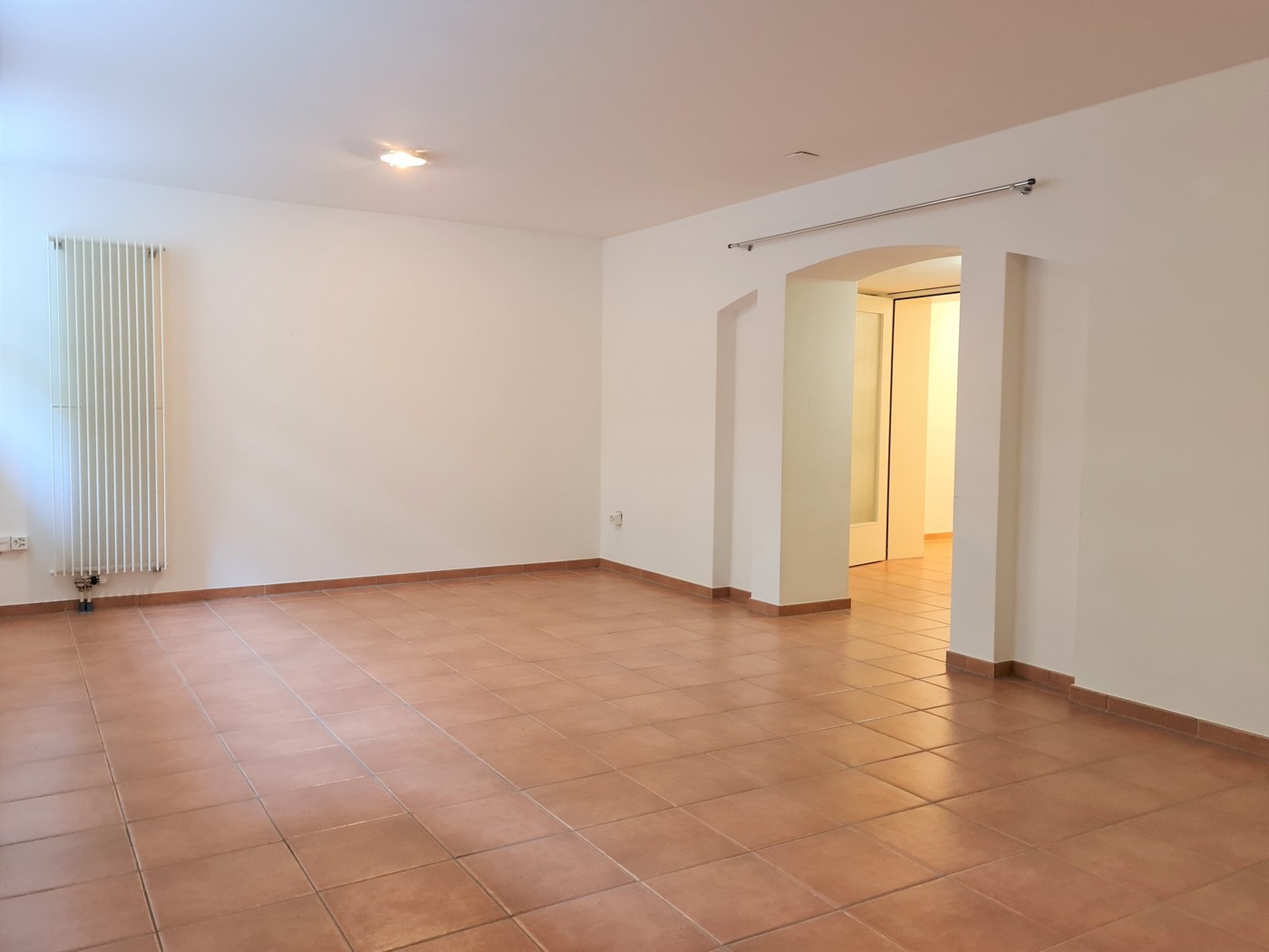 Der grosszügige und freundliche Vorplatz ist mit einer Garderobe sowie Einbauschränken ausgestattet. Durch einen dekorativen Rundbogen führt der Zugang zum Arbeits-/Büro-/Praxisraum.