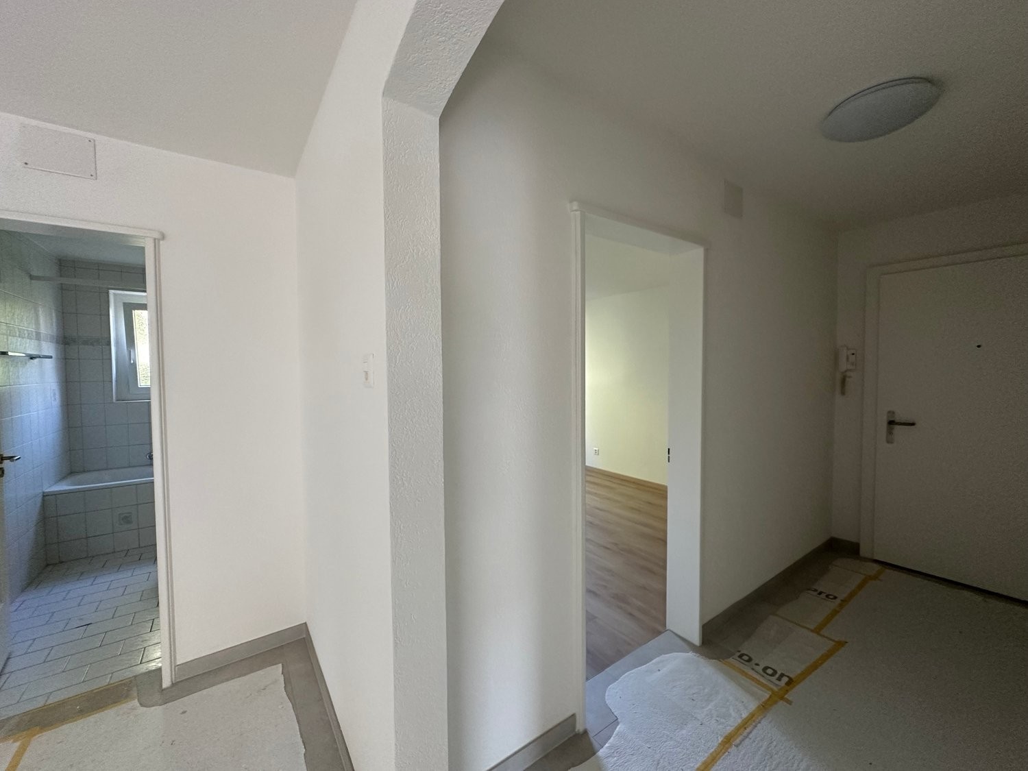 Plattenboden in der Küche, Wohnzimmer und Nasszelle