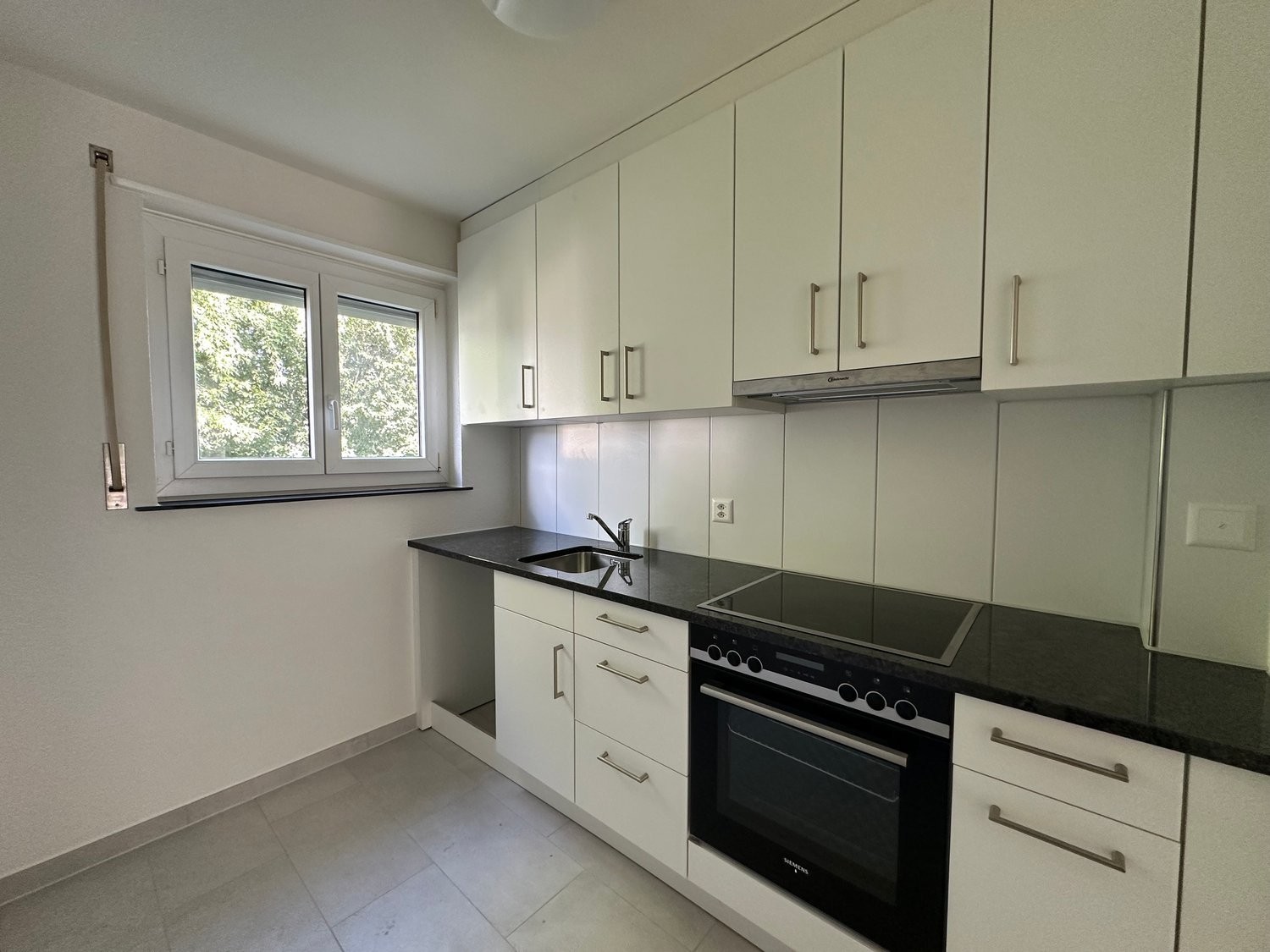 Neue und vollausgestattete Küche mit grossem Kühlschrank, Geschirrspüler und Granitabdeckung