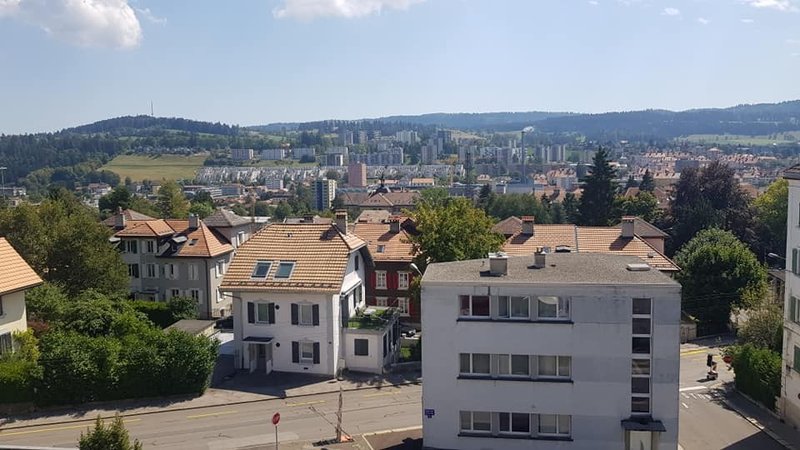 Dans un petit immeuble situé dans un quartier tranquille avec belle vue et proche de la nature.
