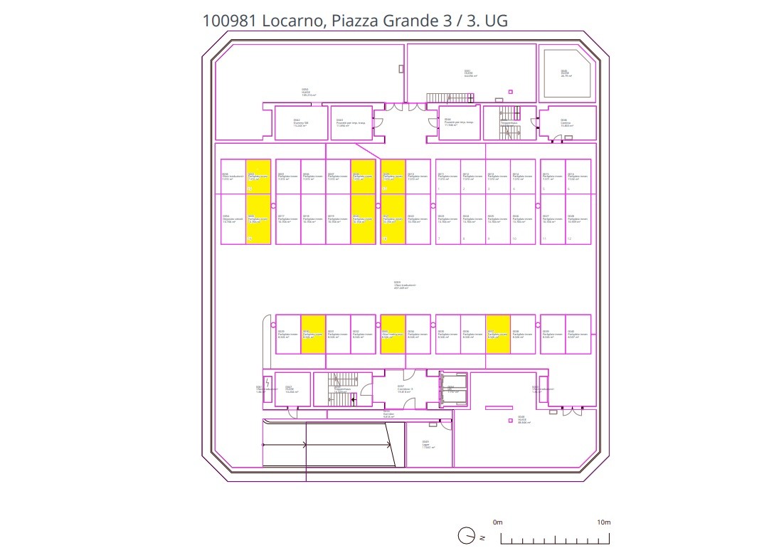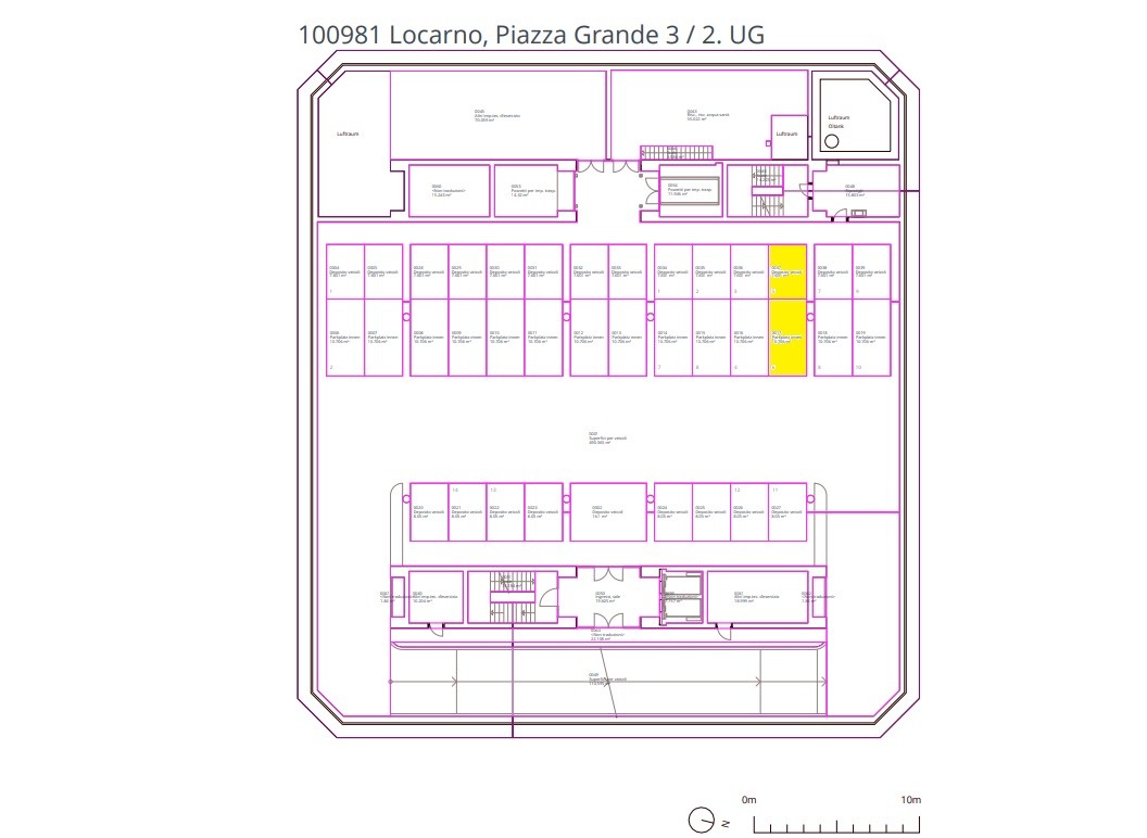 Affittiamo parcheggi doppi in autorimessa, ai piani -2 e -3 di Piazza Grande a Locarno.