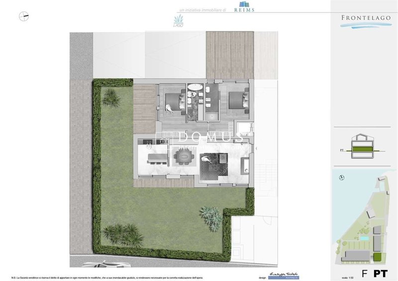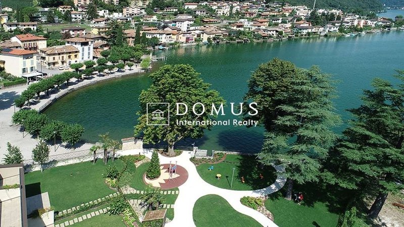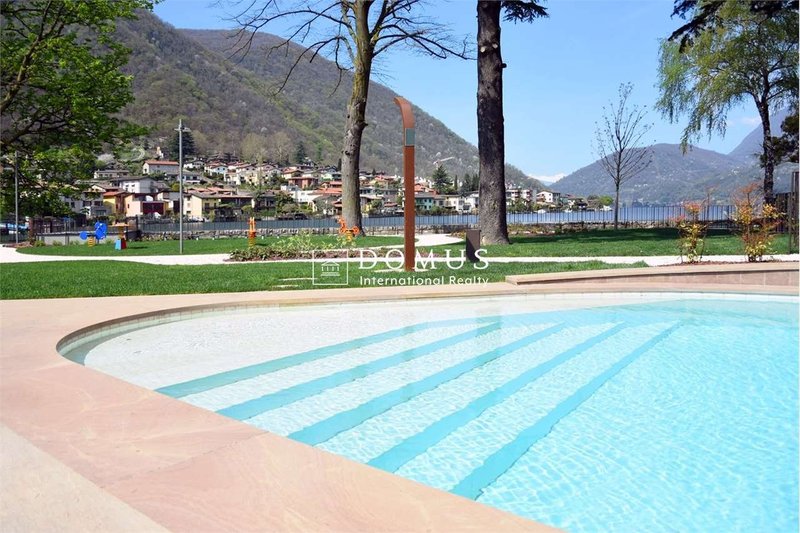 Area verde comune di 2500 mq completa di area giochi, accesso diretto al lago e piscina riscaldata e rivestita in marmo ad uso esclusivo dei residenti.