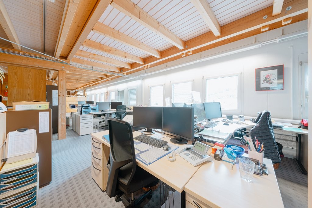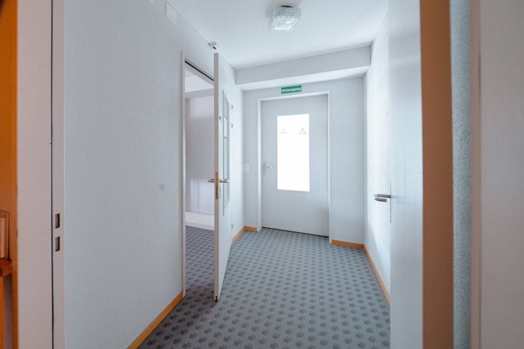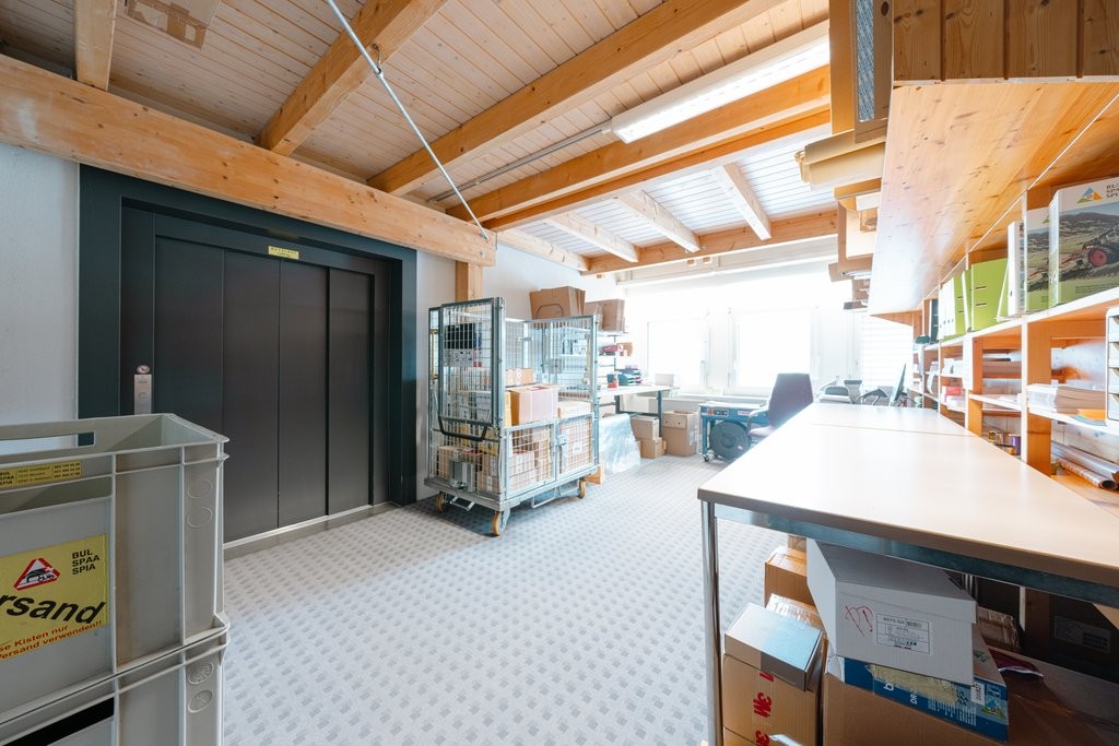 Die Gewerbefläche befindet sich in einem gut besuchten Gewerbehaus, in dem sich unter anderem eine Migros im Erdgeschoss befindet. Die Umgebung bietet eine ausgezeichnete Sichtbarkeit und ist ideal für Kunden- und Mitarbeiterverkehr.