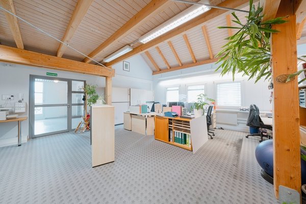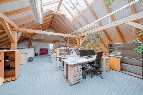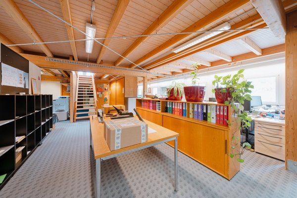 Auf rund 550 m erstreckt sich diese grosszügige Gewerbefläche über zwei Etagen und bietet eine vielseitige Raumaufteilung: