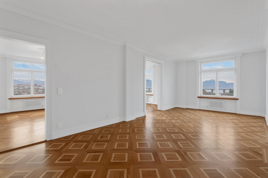 Splendide logement entièrement rénové dans la tour Bel-Air 1 à Lausanne de 5,5 pièces doté d'une vue à 360 degrés.