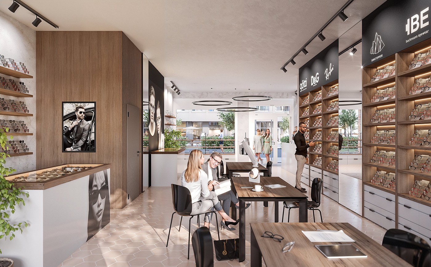 Les commerces et arcades se situent au rez-de-chaussée et permettent un accès direct aux visiteurs et clients et une visibilité maximale grâce à la promenade piétonne du Mail.
