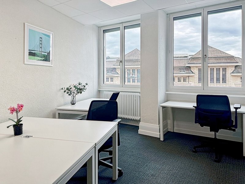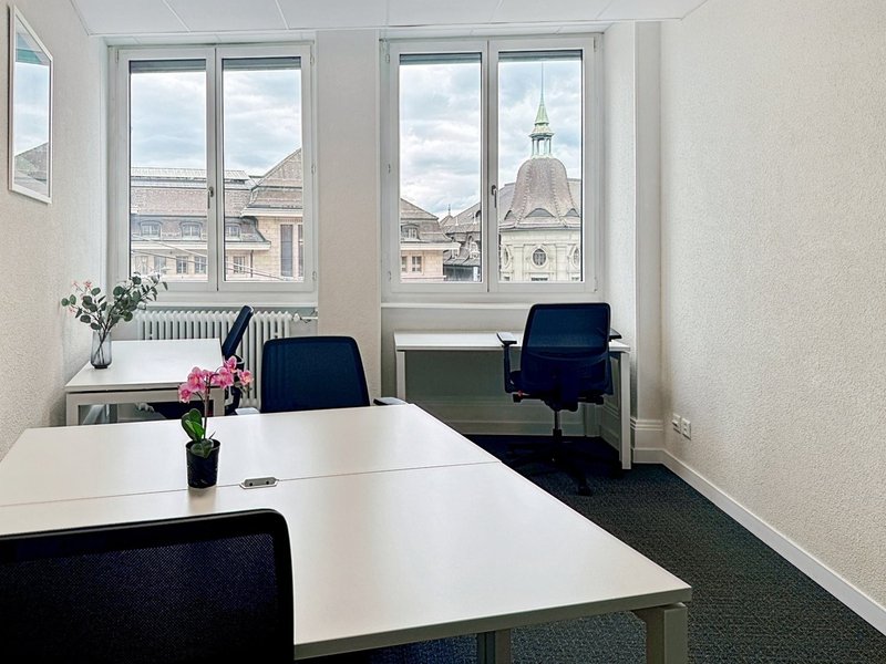 Starten Sie in unseren sorgfältig gestalteten Büros in der 12, place de la Gare. Die Schlichtheit des Gebäudes weicht, sobald man die Schwelle überschreitet, angenehmen Farbtupfern und einer komfortablen Umgebung, die die Konzentration fördert.