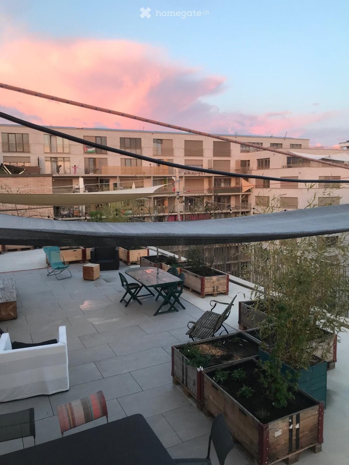 Beaucoup d?espaces partagés dans l?immeuble : buanderie, station vélos, grandes terrasses, salles communes, chambres d?amis, ateliers divers.
