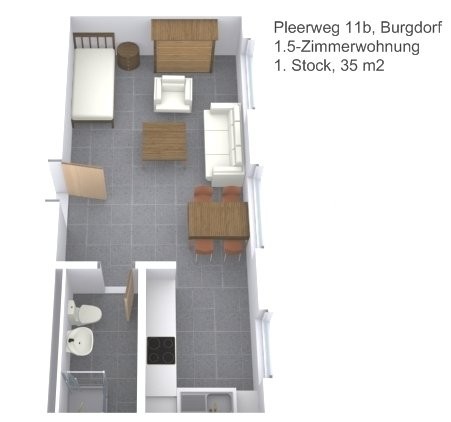 Wir vermieten per sofort oder nach Vereinbarung diese 1.5-Zimmerwohnung im schönen Pleerweg-Quartier.