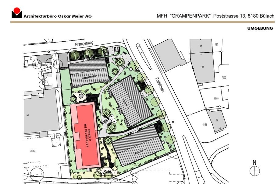 An der Poststrasse 13 entstehen 15 moderne und zukunftsorientierte Mietwohnungen. Der Wohnungsmix von 2.5- bis 4.5-Zimmer-Wohnungen im Minergie-Standard bietet für jede Lebenssituation das passende Zuhause — ob Singles, Paare oder Familien. Hier wohnen Sie urban und doch naturnah.
