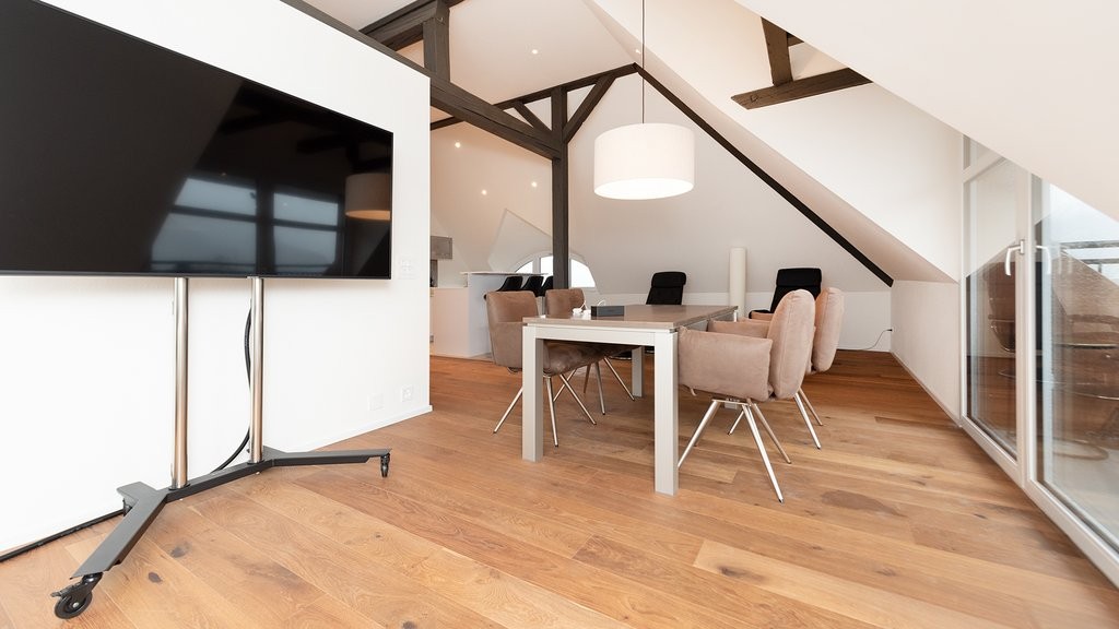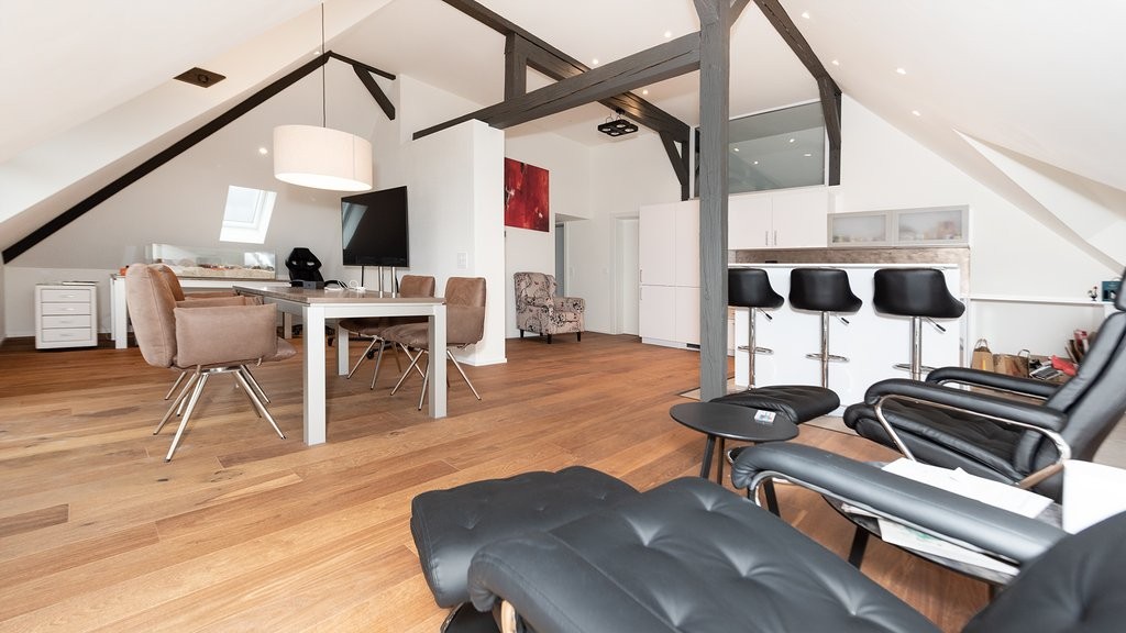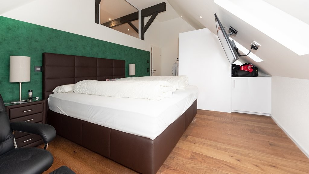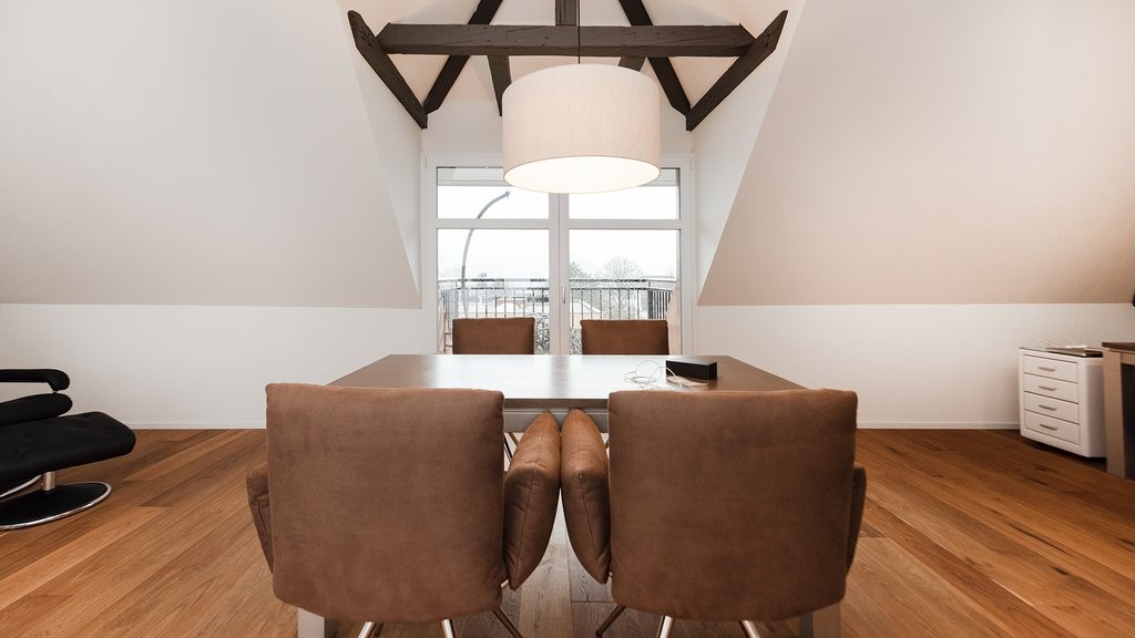 Das Mobiliar verspricht zeitlosen und modernen Stil. Des Weiteren profitieren Sie von einer bereits gegebenen WLAN-Verbindung und Lichter Spots in der ganzen Wohnung. Diese einmalige & traumhafte Dachwohnung dürfen Sie sich auf keinen Fall entgehen lassen.