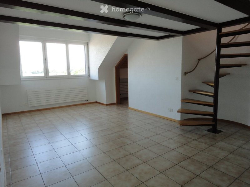 Appartement de 2 pièces en attique avec mezzanine et escalier tournant.