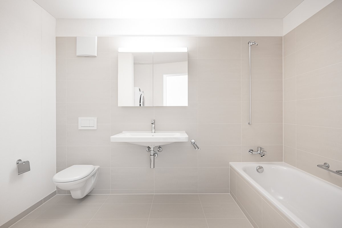 - Naszelle mit Keramikplatten, Badewanne, Dusche, WC