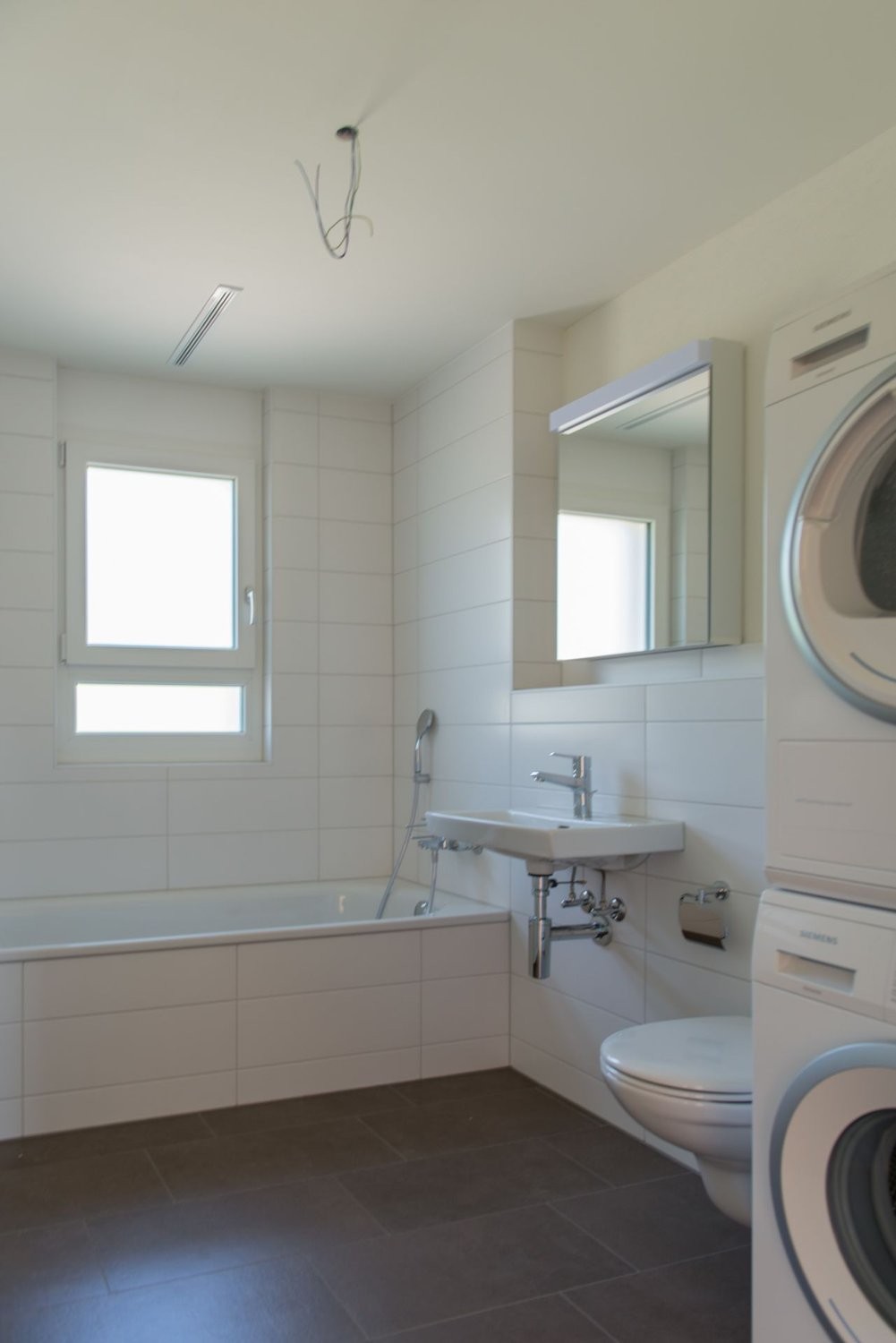 Die Wohnung verfügt über eine Komfortlüftung, offene Küche, Badewanne, eigene Waschmaschine und Tumbler, elektrische Storen, Bodenheizung und eine Terrasse.
