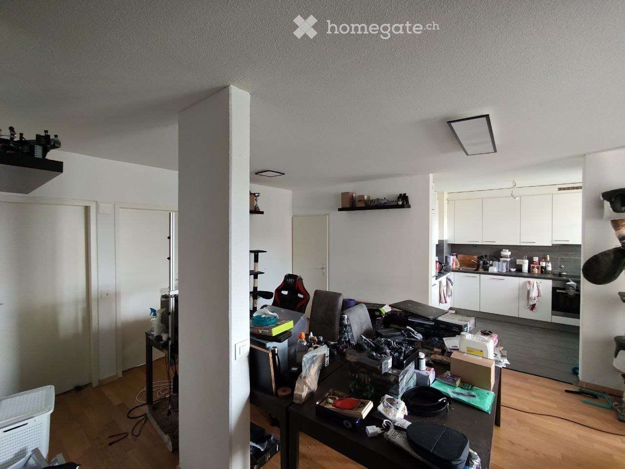 3.5 pièces comprenant : 2 chambres, 1 demi-pièce pouvant servir de bureau, un grand salon/salle à manger, une cuisine ouverte équipée, salle de bain avec arrivée d'eau et baignoire, ainsi qu'une toilette séparée.