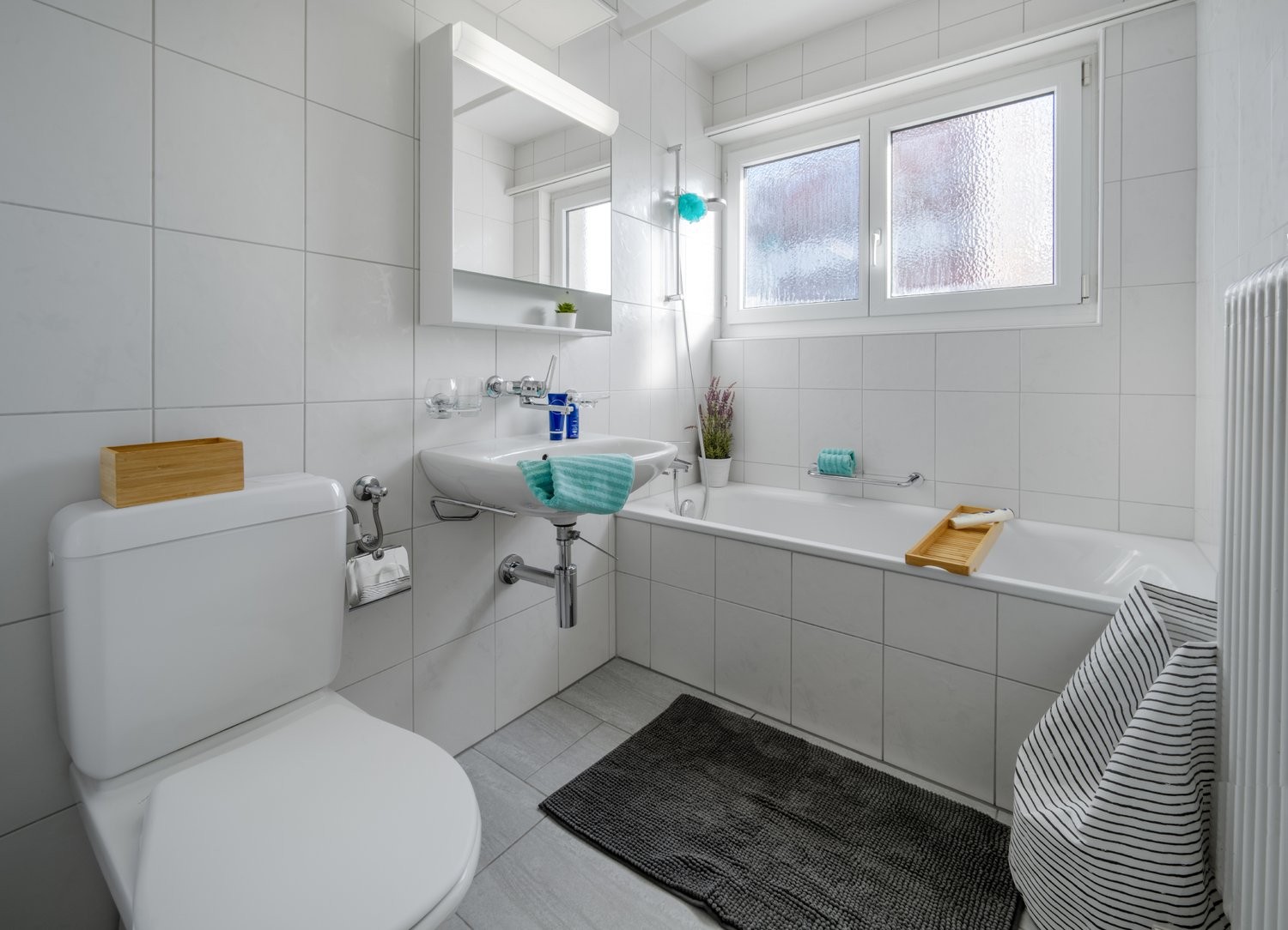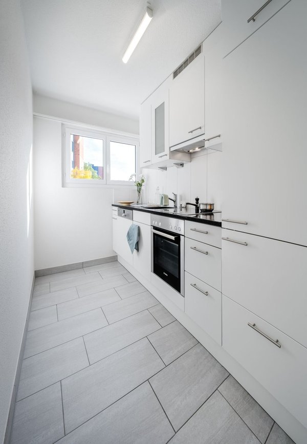 - Küche und Badezimmer mit pflegeleichten Bodenplatten