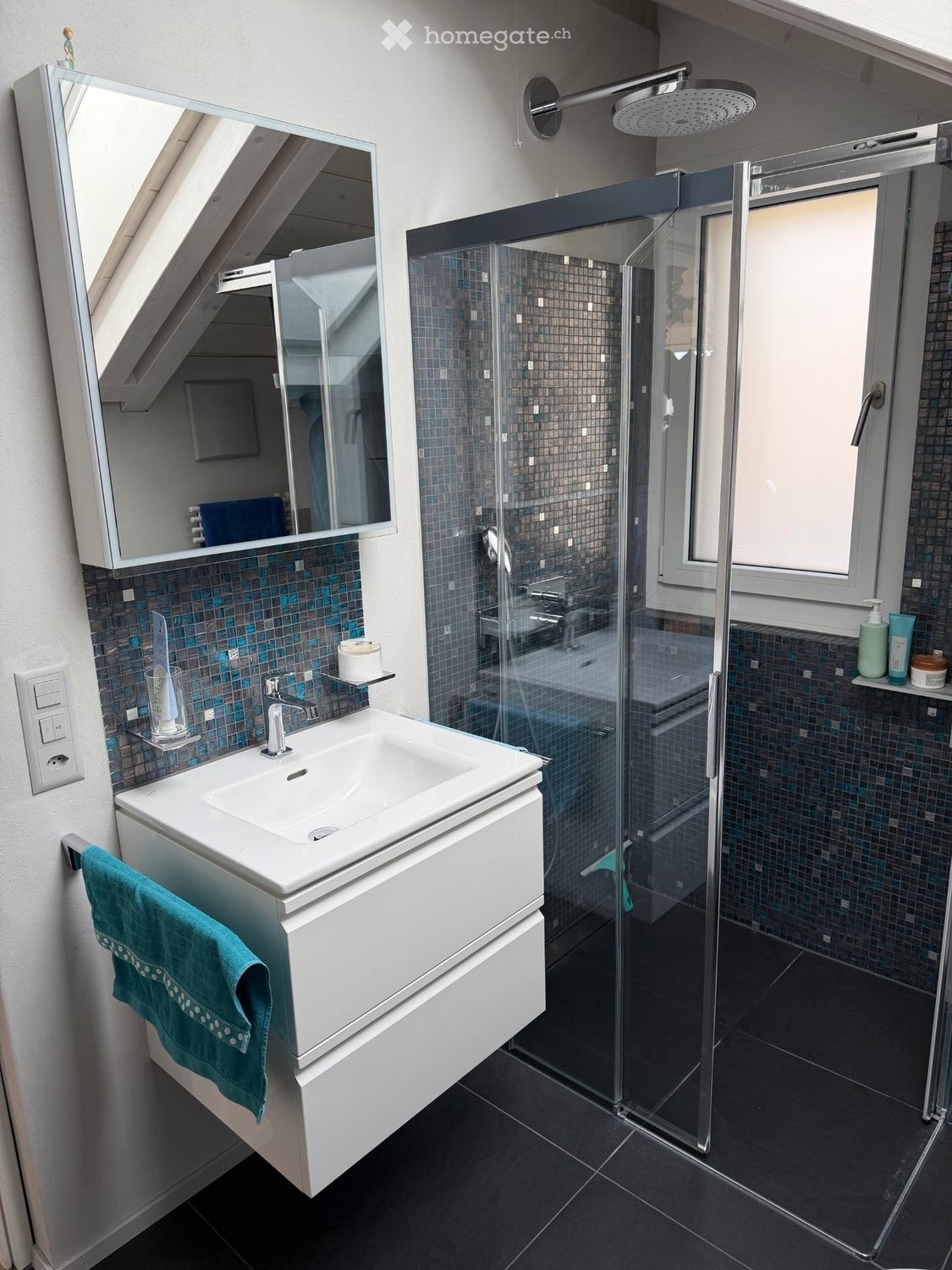 - auf Wunsch kann ein Hobbyraum (18.6m2) mit isoliertem Boden, Eichenparkett, Fenster und Küchenelement mit Spülbecken für 250.- CHF dazugemietet werden