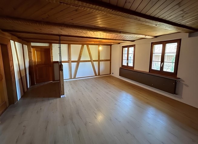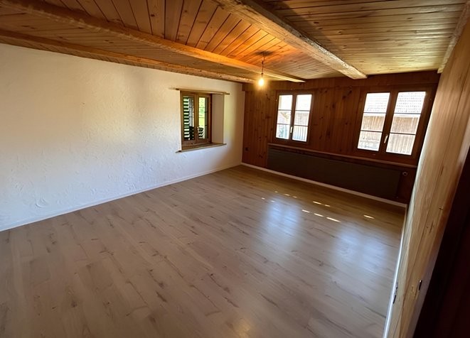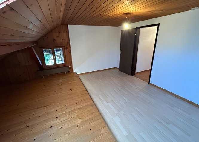 4.5 Zimmer: Grosszügige Räume mit charakteristischen Holzdecken, Holzböden und traditionellen Holzfenstern, Befristeter Mietvertrag für 1 Jahr. Verlängerung kann angefragt werden.