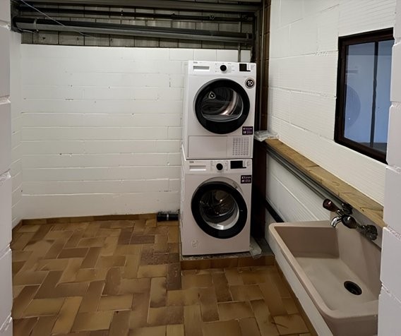 Waschküche: Mit gestapelter Waschmaschine und Trockner