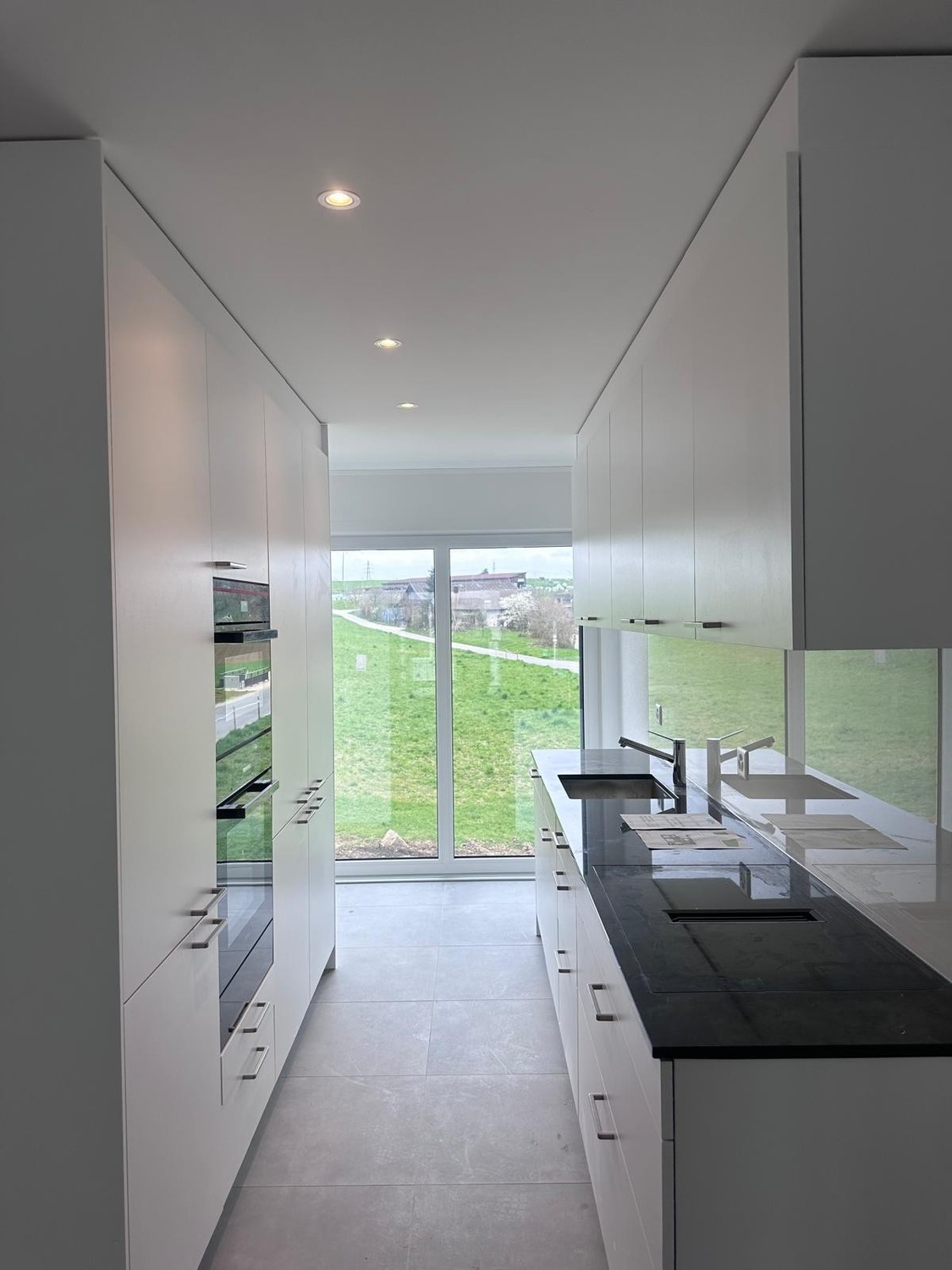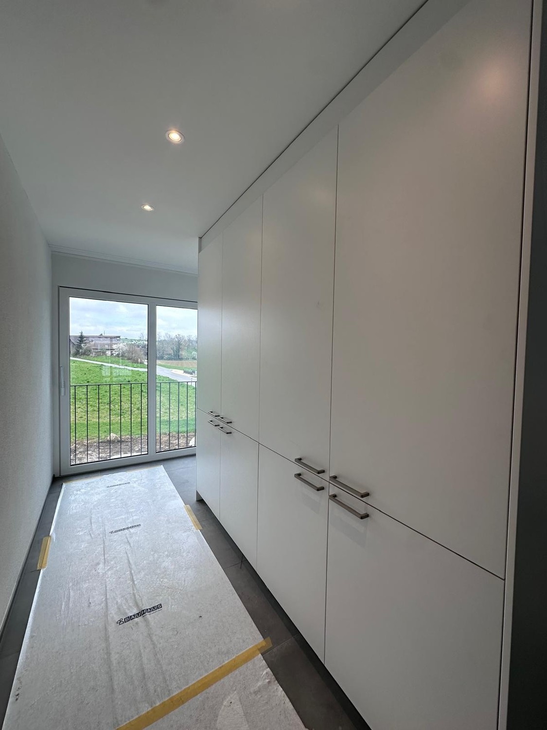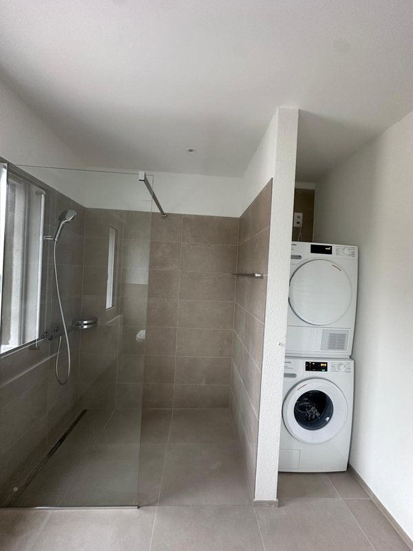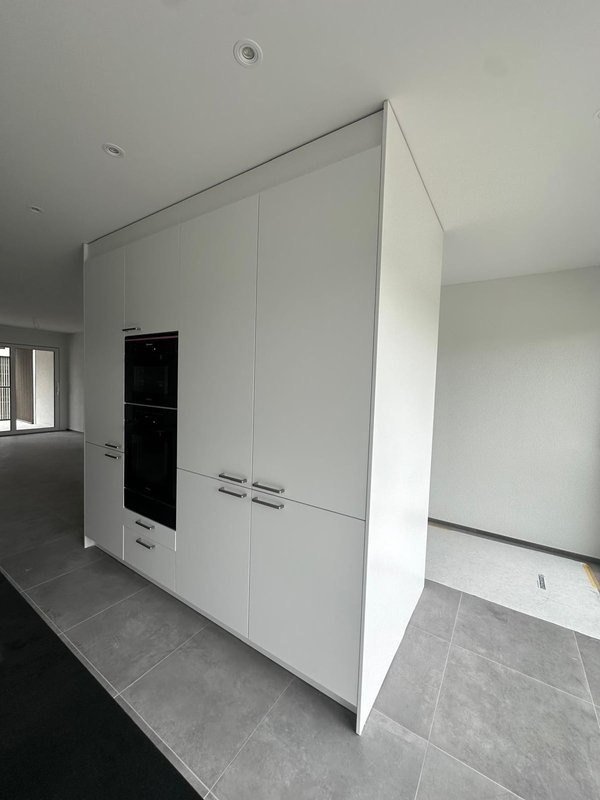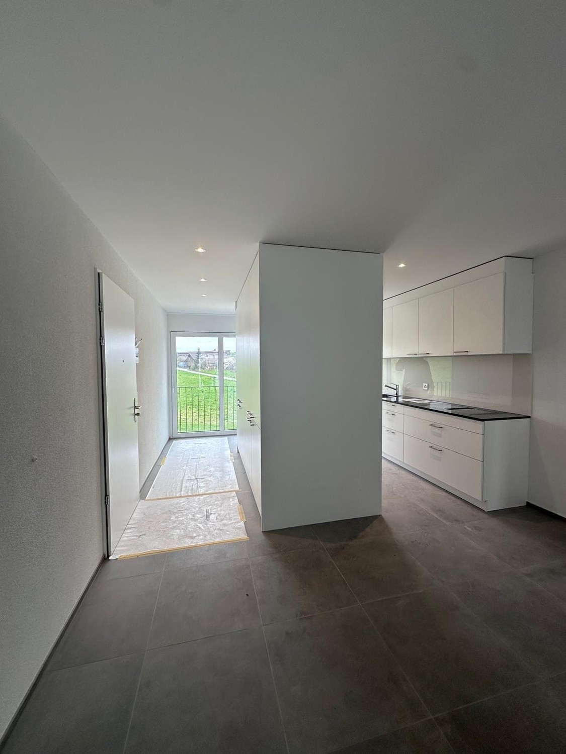 Die 3.5-Zimmerwohnung ist in der gesamten Wohnung mit hochwertigen Plattenböden ausgestattet. Die Wohnküche lässt keine Wünsche offen, da sie über einen großen Kühlschrank mit Gefrierfach sowie einen Geschirrspüler verfügt und ausreichend Stauraum bietet. Zudem sind sämtliche Küchengeräte von Miele. In der Nasszelle sind die Wandplatten und Sanitärapparate in geschmackvollen Farben gehalten. Das Badezimmer verfügt über ein Lavabo, einen Spiegel, ein WC und eine Dusche. Die Wohnung ist sehr hell und gut aufgeteilt. Das dazugehörige Kellerabteil befindet sich im Untergeschoss des Gebäudes. Die Wohnung verfügt ebenfalls über elektrische Storen, Bodenheizung und Glasfaseranschluss von der Swisscom. Die in der Wohnung vorhandene Waschmaschine und der Tumbler sowie der Balkon runden das Angebot ab.