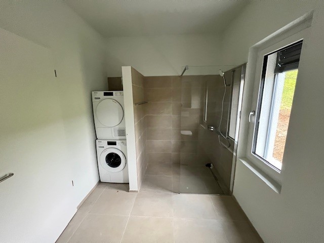 Die 3.5-Dachwohnungen ist in der gesamten Wohnung mit hochwertigen Plattenböden ausgestattet. Die Wohnküche lässt keine Wünsche offen, da sie über einen großen Kühlschrank mit Gefrierfach sowie einen Geschirrspüler verfügt und ausreichend Stauraum bietet. Zudem sind sämtliche Küchengeräte von Miele. In der Nasszelle sind die Wandplatten und Sanitärapparate in geschmackvollen Farben gehalten. Das Badezimmer verfügt über ein Lavabo, einen Spiegel, ein WC und eine Dusche. Die Wohnung ist sehr hell und gut aufgeteilt. Das dazugehörige Kellerabteil befindet sich im Untergeschoss des Gebäudes. Die Wohnung verfügt ebenfalls über elektrische Storen, Bodenheizung und Glasfaseranschluss von der Swisscom. Die in der Wohnung vorhandene Waschmaschine und der Tumbler sowie der Balkon runden das Angebot ab.