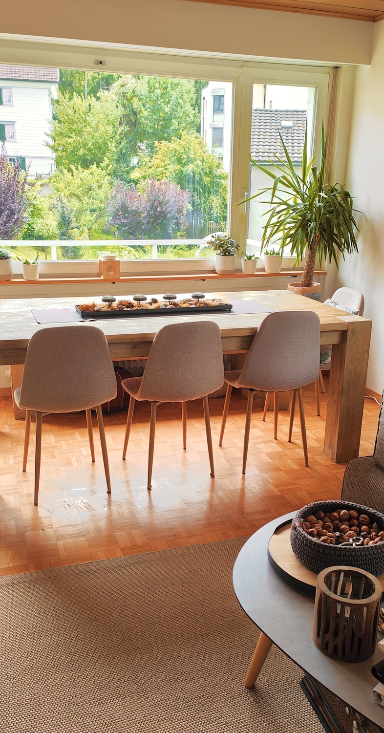 Wir leben in einer 4 Zimmer Wohnung mit grossem Wohnzimmer (inklusive grossem Balkon) seit 1,5 Jahren.