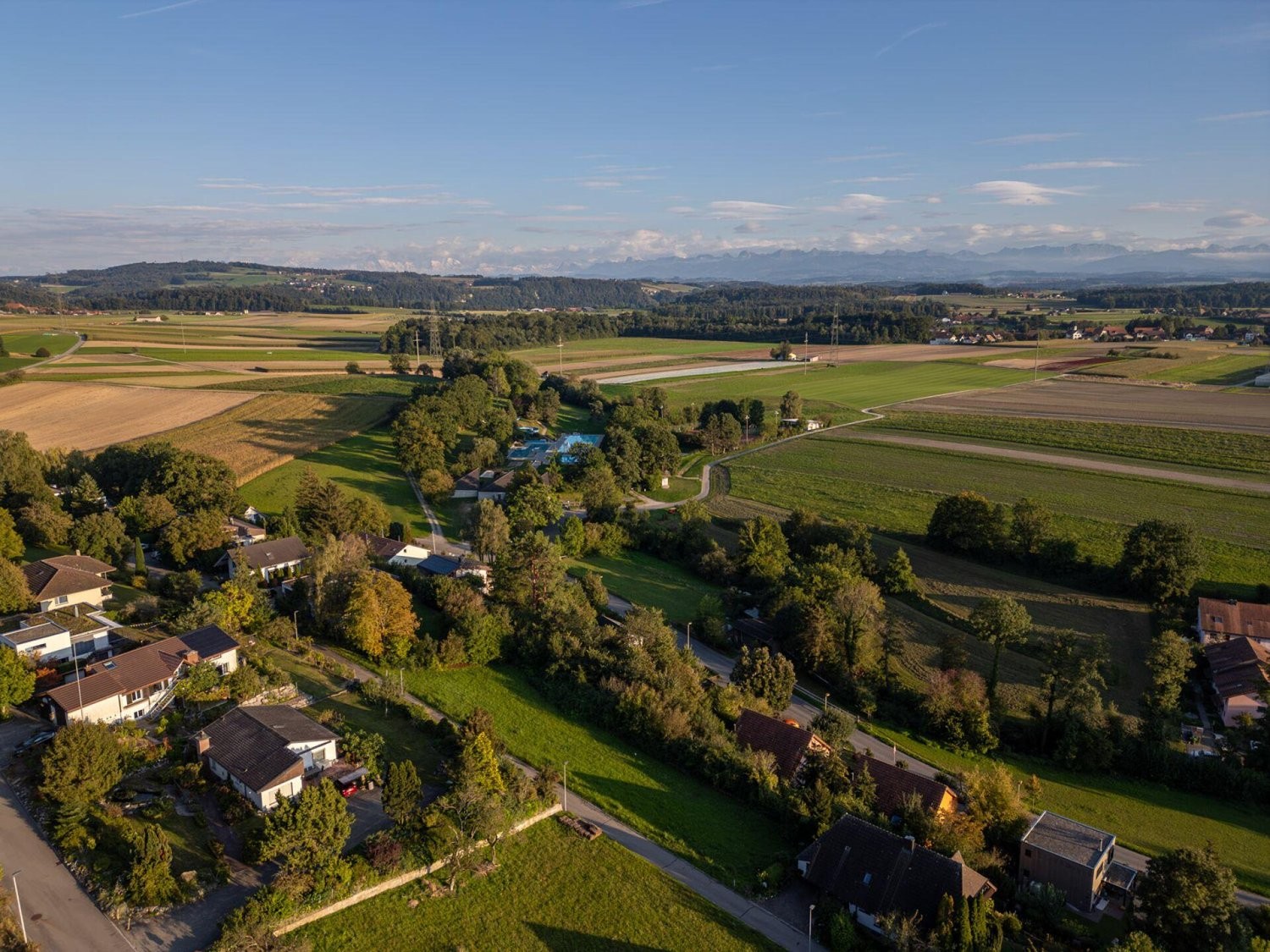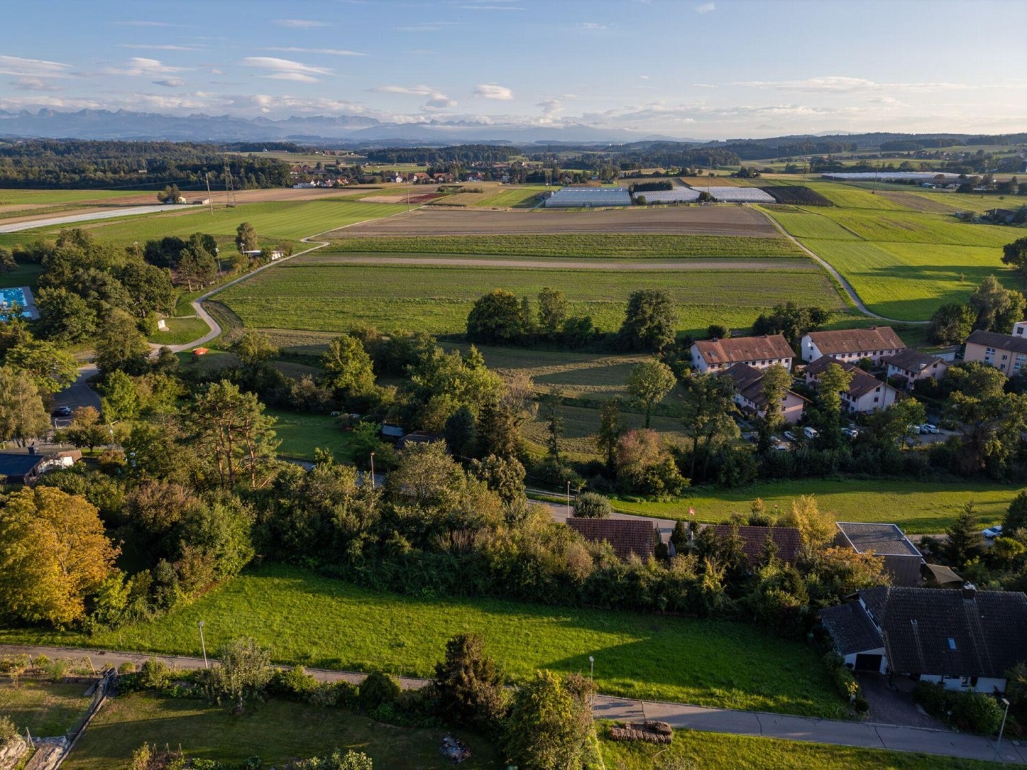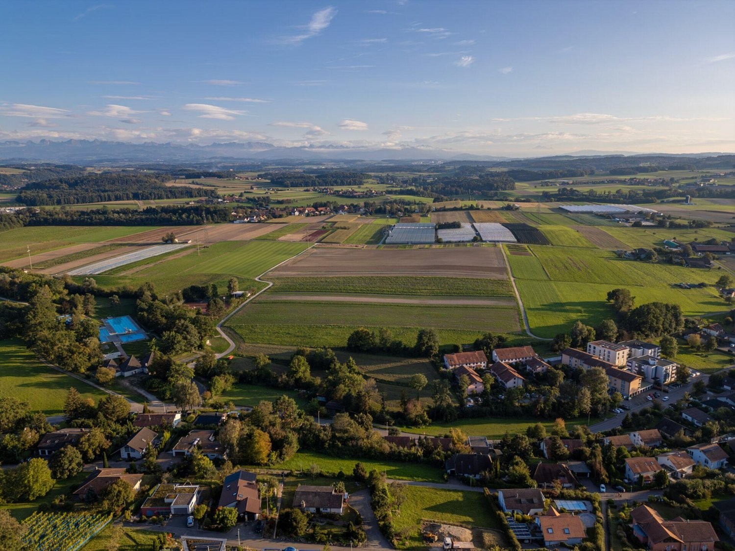 Das Bauland liegt an einer leichten Hanglage nach Süden, wodurch Sie den ganzen Tag von einer optimalen Besonnung profitieren. Zudem bietet die erhöhte Lage eine wunderschöne Weitsicht über die Landwirtschaftszone bis hin zur Alpenkette und zum Jura.