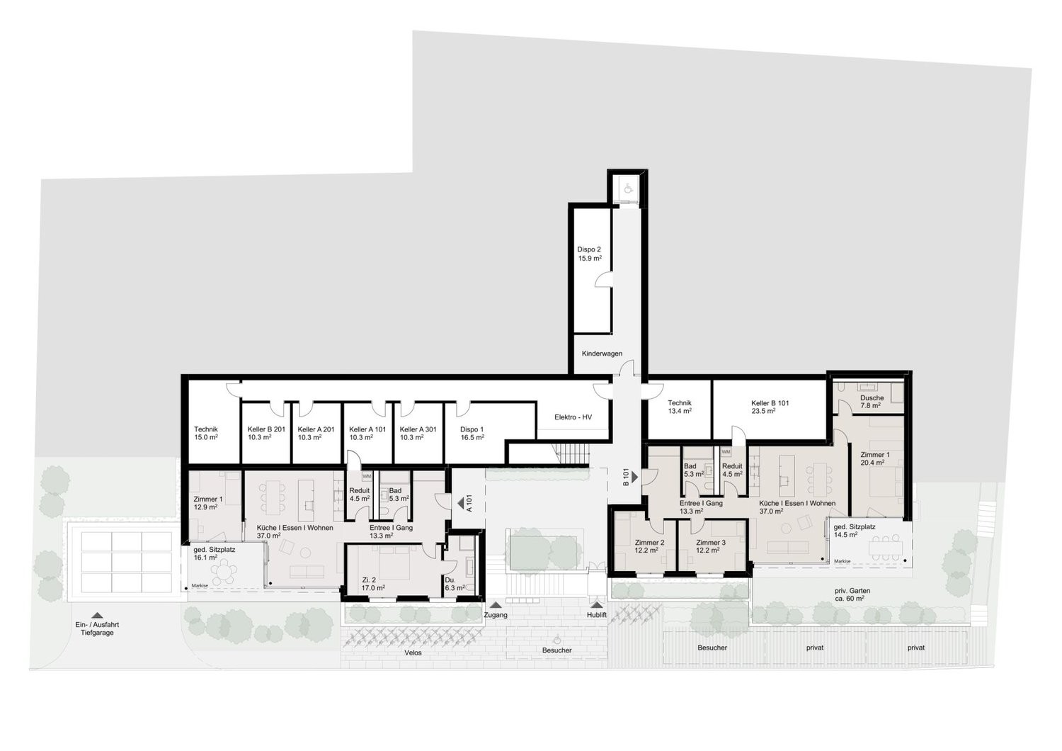 Ebene 1 - 3.5 Zimmer - NWF 96.3m² - Ged. Sitzplatz 16.1m² - CHF 840'000