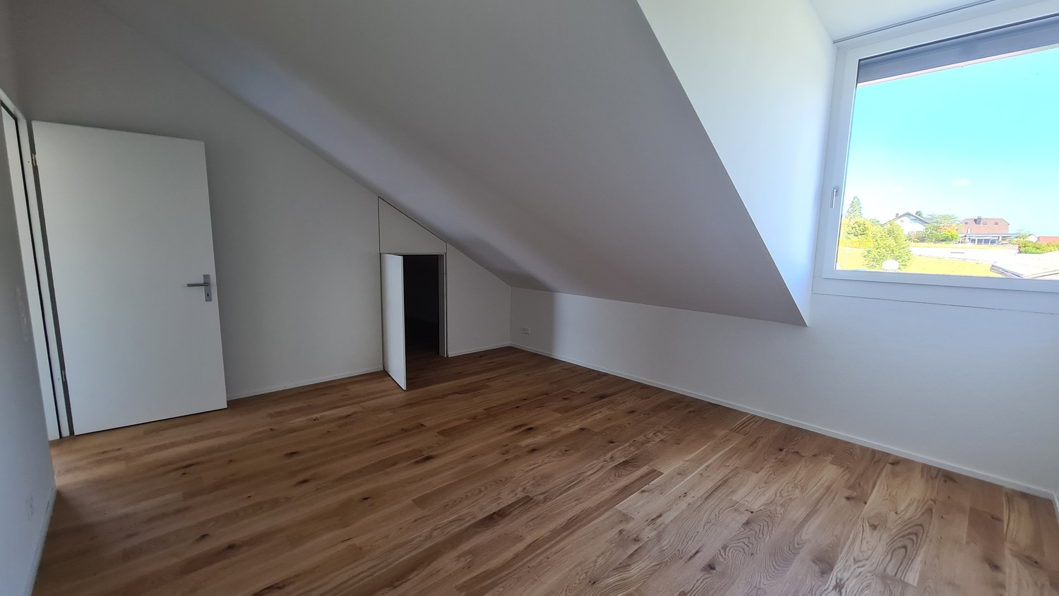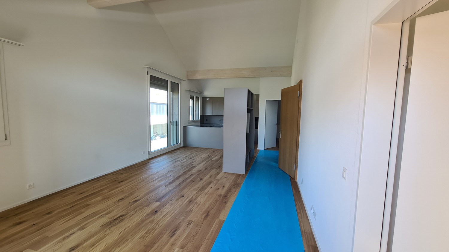 Ich suche für meine 3.5-Zimmer-Dachwohnung einen Nachmieter per 1. Mai 2026. Die Wohnung ist Teil eines Neubaus aus dem Jahr 2024 und liegt in einem ruhigen Quartier. Einkaufsmöglichkeiten und Anbindungen an den öffentlichen Verkehr sind in wenigen Minuten zu Fuss erreichbar. Sie bietet dir insbesondere: