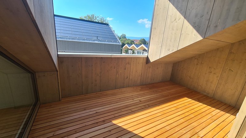 Da es sich um einen Neubau handelt, ist die Dachwohnung sehr gut isoliert. Egal ob im Winter oder Sommer, es herrscht stets ein angenehmes Raumklima.