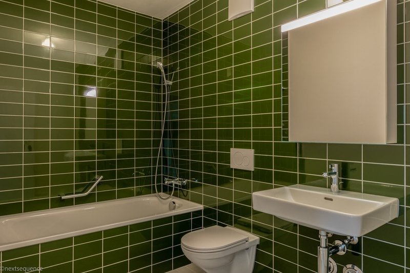 Parkett in den Zimmern und Plattenböden in den beiden Bädern