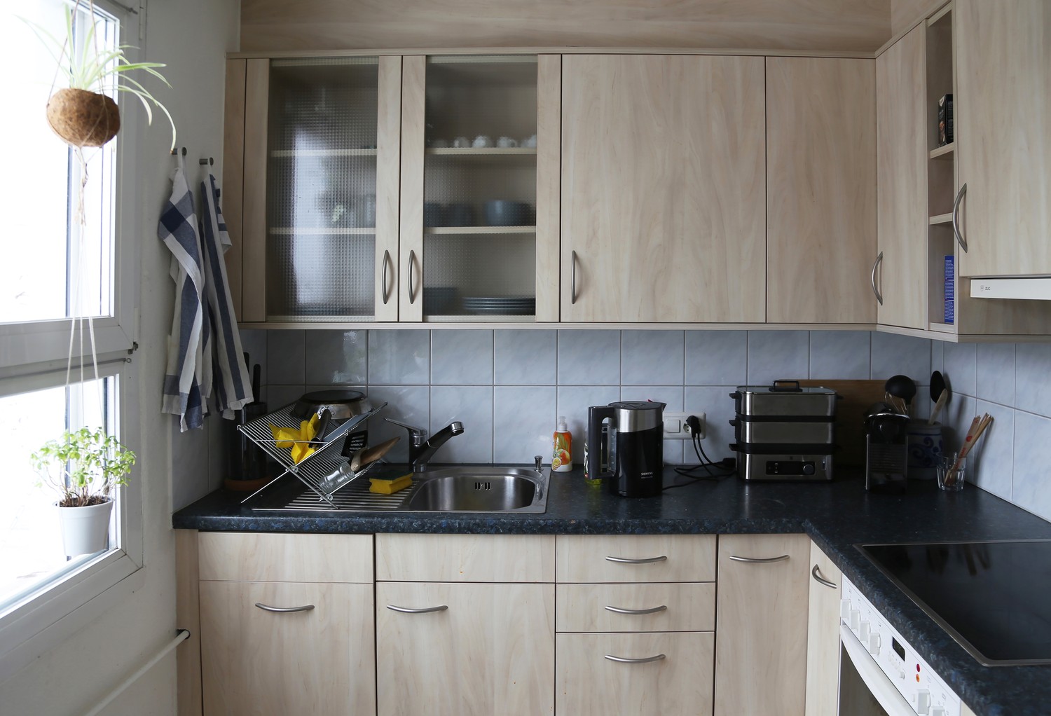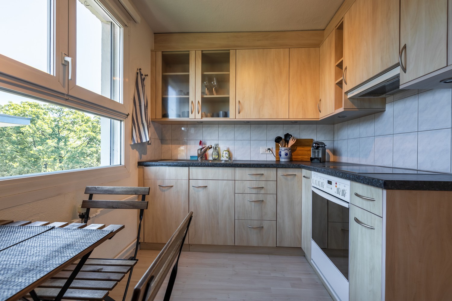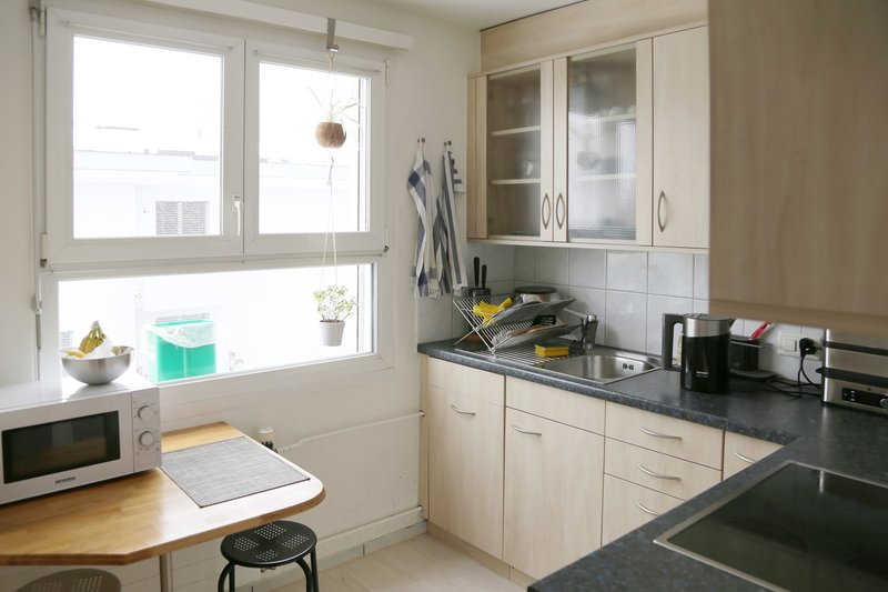 The laundry is in the basement and you can use it every day (Sunday included)and the flat has a cellar.