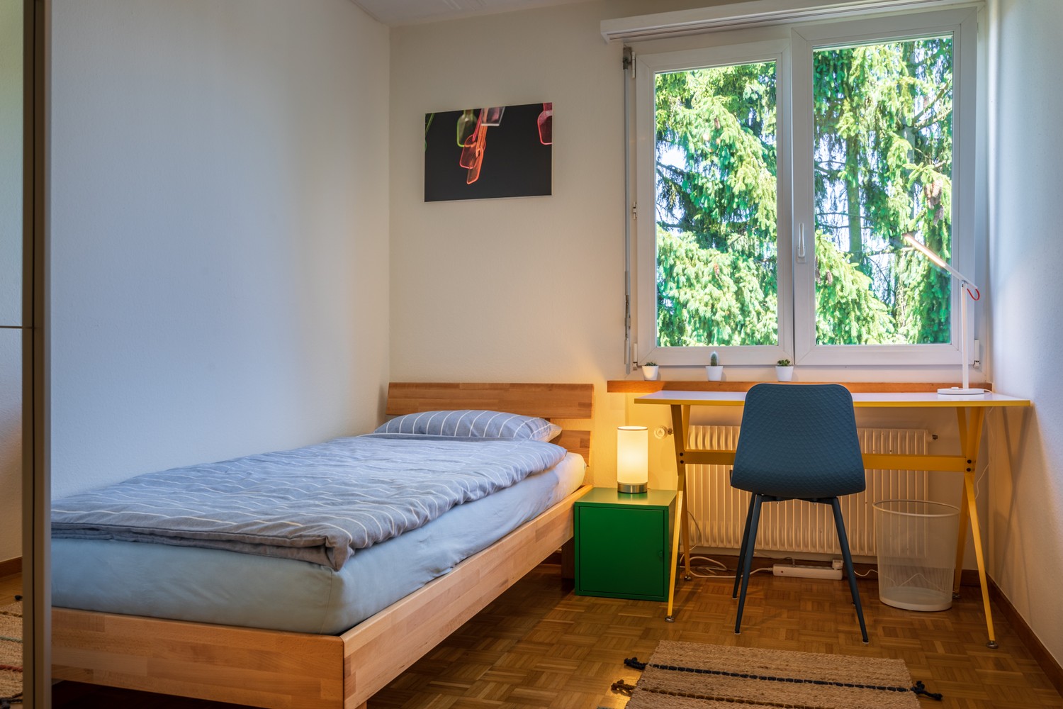 The flat is completely furnished and the common spaces (kitchen, bathroom and the entrance) are cleaned once a week. The cleaning and the wifi are included in the price.