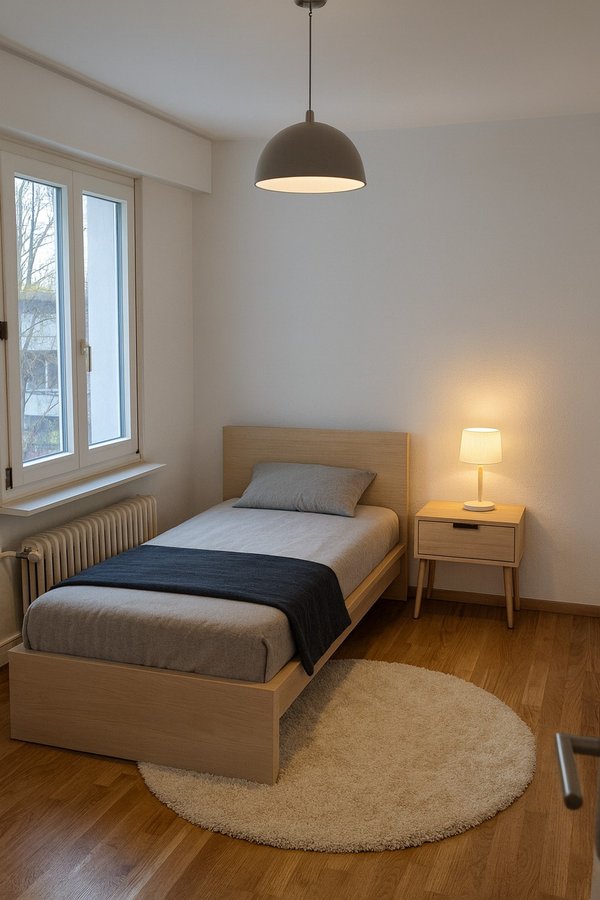 Das Zimmer ist hell, angenehm geschnitten und eignet sich gut für jemanden, der Ruhe und Ordnung schätzt. Unmöbliert / möbliert nach Absprache.