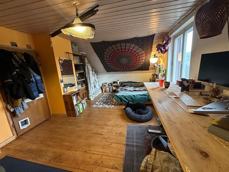 Auf 1. Mai 2026 wird bei uns ein Zimmer frei. Das Zimmer überzeugt mit einer hohen Decke und einem grosszügigen Raumgefühl. Auch der restliche Teil des Hauses sowie der Garten, kann selbstverständlich von der mietenden Person mitgenutzt werden.