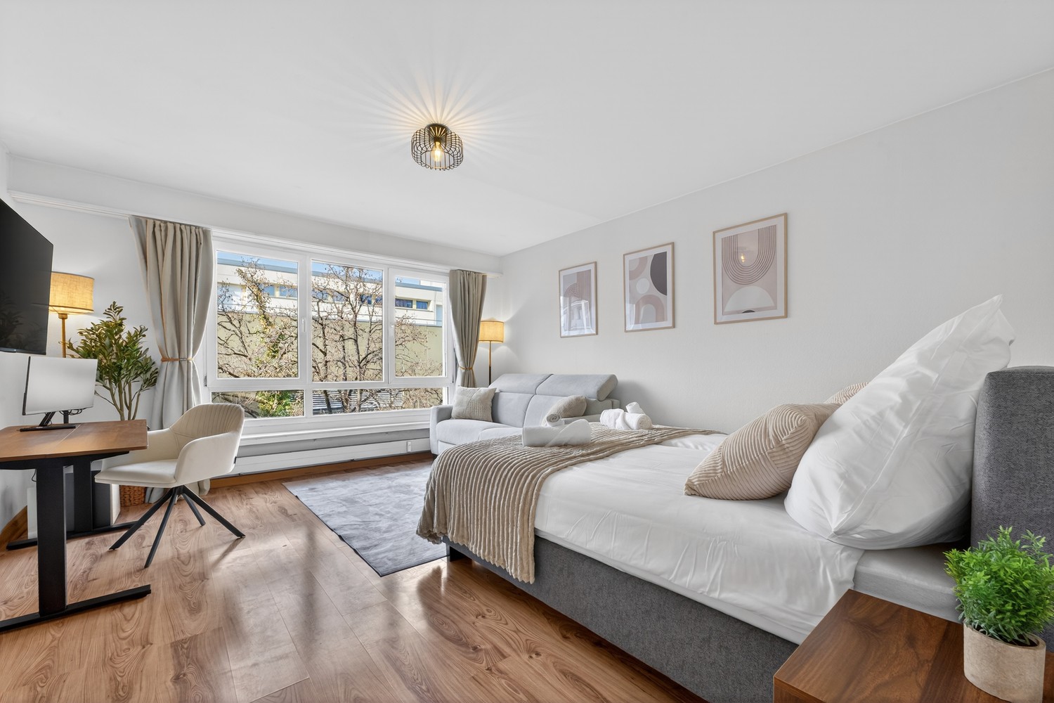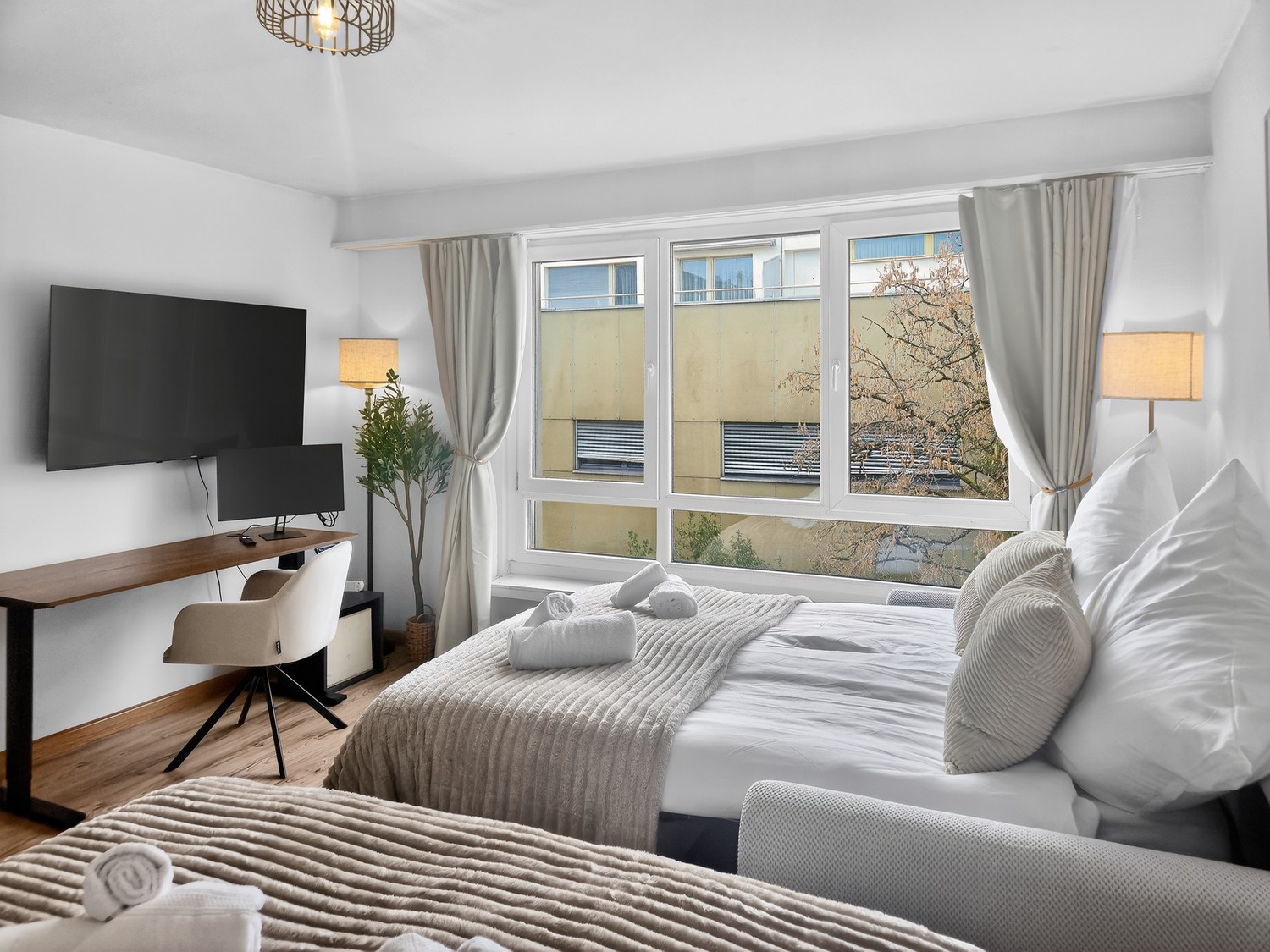Bright, stylish and quiet furnished 1.5-room apartment (35 m²) in Basel with a balcony – perfect for longer stays combining comfortable living and working. Suitable for up to 4 guests thanks to a comfortable sofa bed with a proper mattress. Very well maintained and fully equipped.