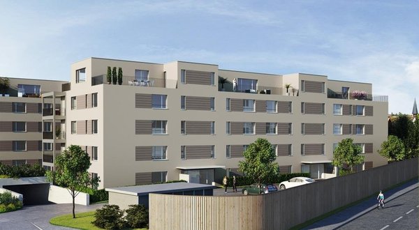 Das moderne Wohngebäude mit seinen Balkonen und der grünen Umgebung bietet eine perfekte Balance zwischen urbanem Komfort und naturnahem Wohnen. Die sonnige Lage sorgt das ganze Jahr über für angenehme Lichtverhältnisse, während die ruhige Umgebung erholsame Nächte garantiert.