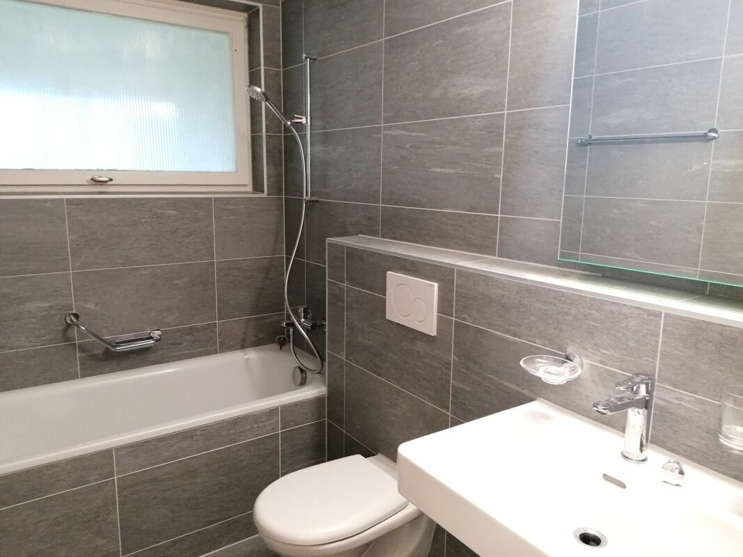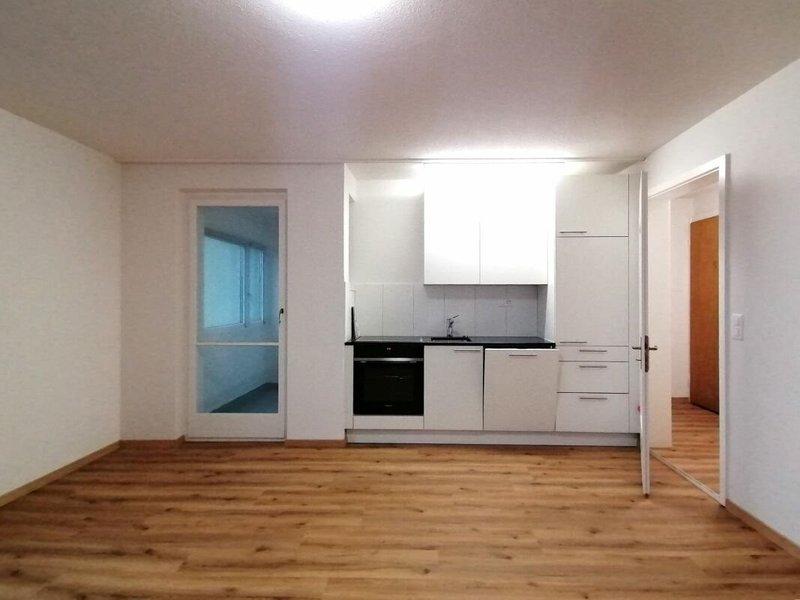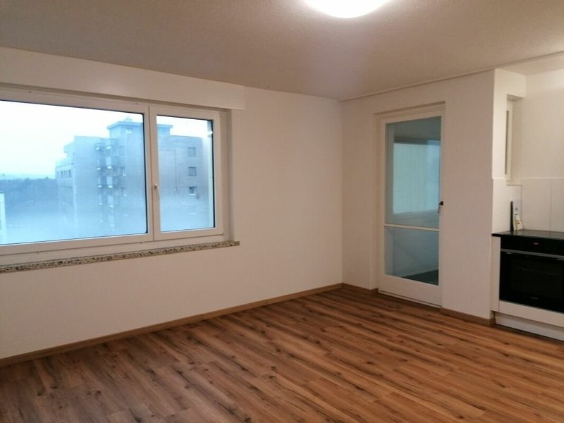 Zeitlos und hell präsentiert sich diese 1-Zimmerwohnung mit verglastem Balkon mit Schiebefenstern.