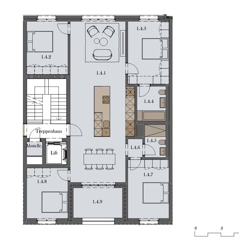 Im selben Haus befinden sich eine Kindertagesstätte und ein Restaurant – praktisch für Familien und Berufstätige gleichermassen.