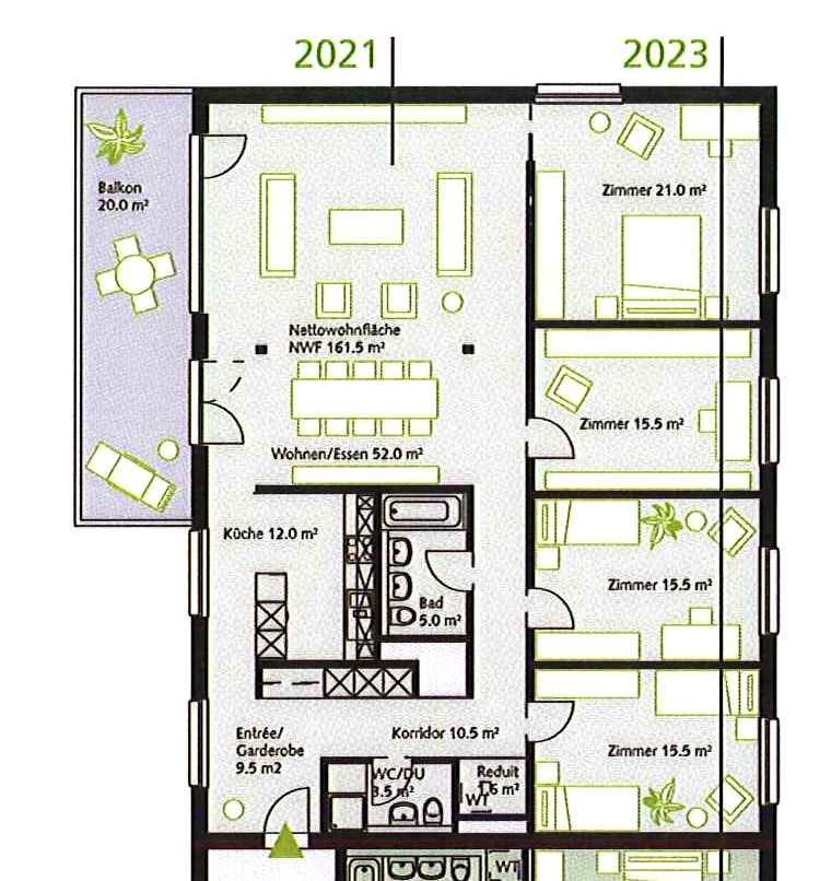 - Zwei Bäder (Bad/WC sowie Dusche/WC)