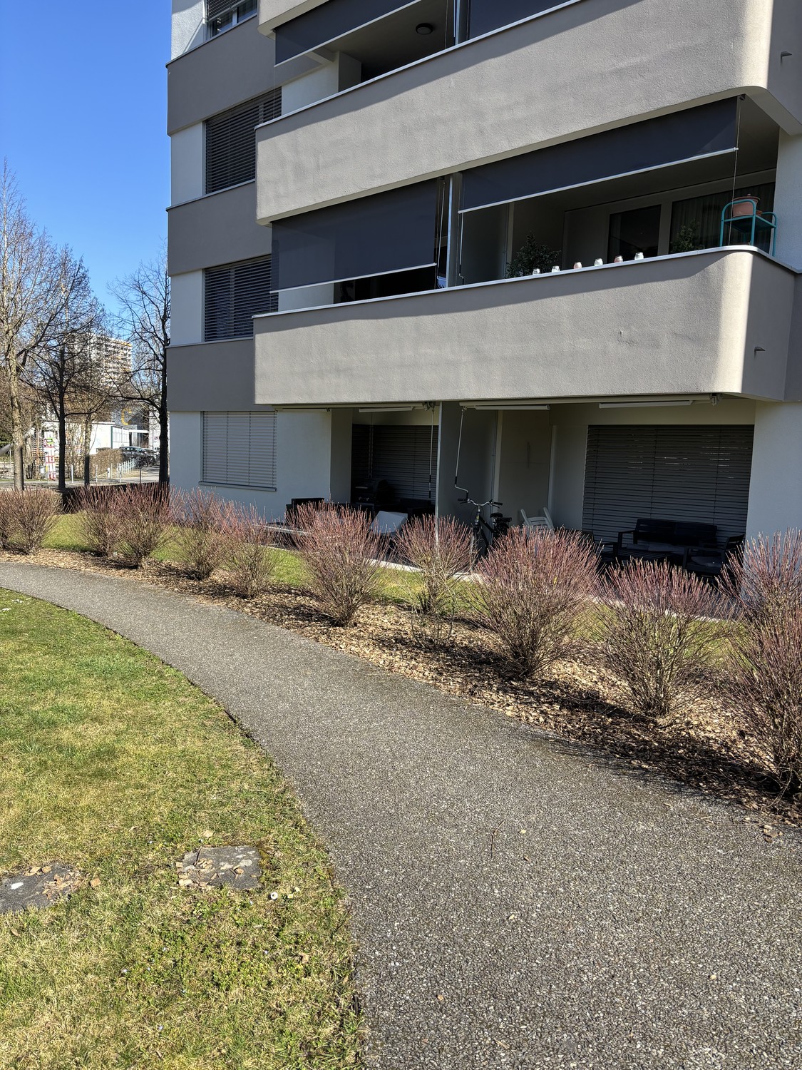 Die schöne Garten-Wohnung im Erdgeschoss befindet sich in der 2013 erstellten Liegenschaft an der Riedbachstrasse in 3027 Bern.