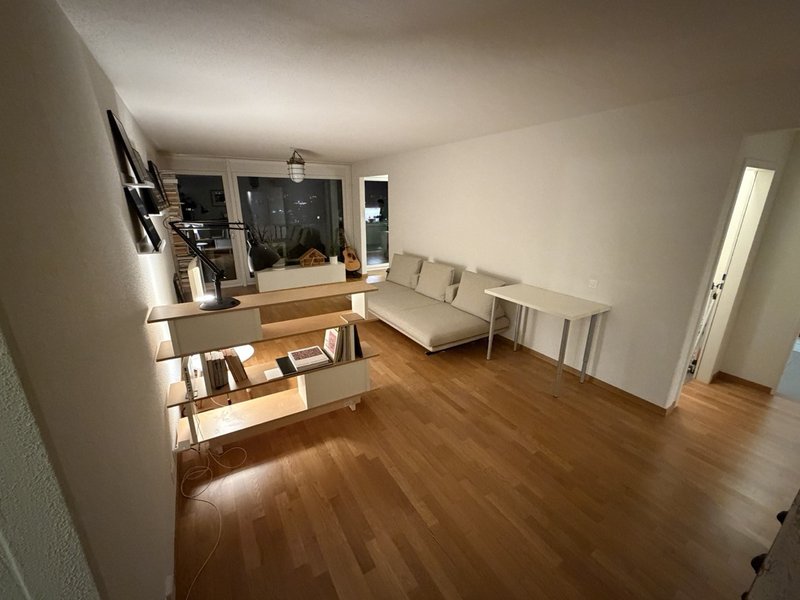 14qm gross und befindet sich in einer 100qm erwachsenen 3er WG wohnung . die wohnung ist im 8ten stock mit aufzug und hat eine tolle aussicht. die wohnung hat also drei schlafzimmer, zwei badezimmer, ein reduit mit waschturm und einen offenen bereich für wohn- und esszimmer, sowie küche. auto-parkplätze sind mietbar.