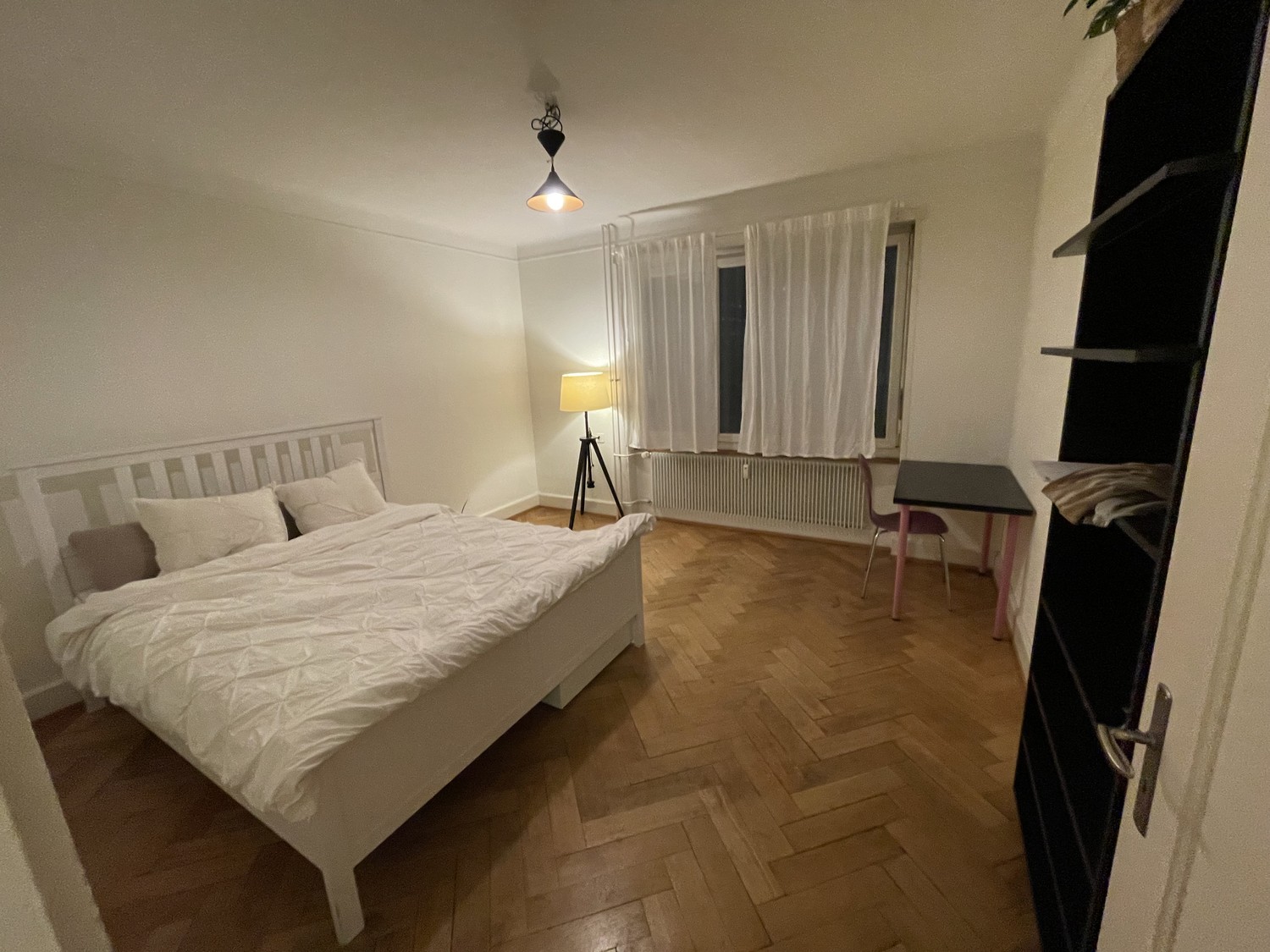 Es hat ein grosses, gut isoliertes Fenster nach Südosten, das sich komplett öffnen lässt. Perfekt zum Lüften in warmen Sommernächten. Storen sorgen dafür, dass du den Raum bei Bedarf komplett abdunkeln kannst.