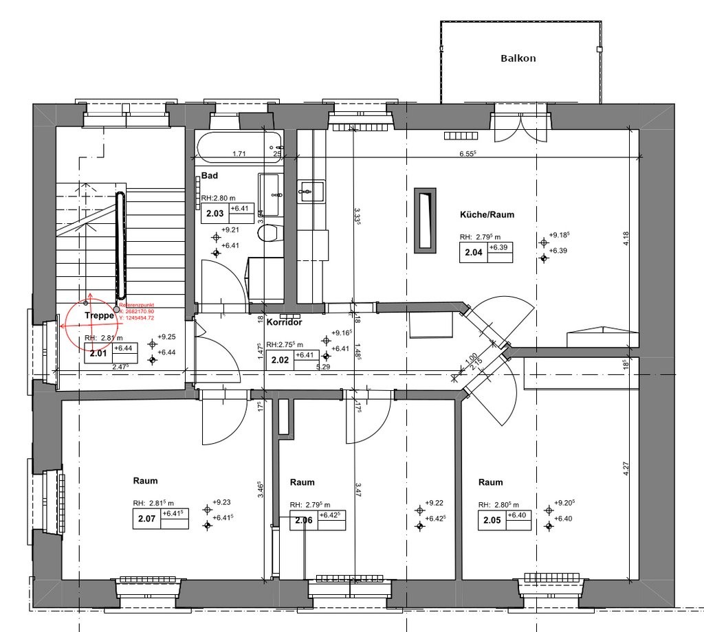 - Wohn-/Schlafzimmer und Korridor mit schönen Parkettböden