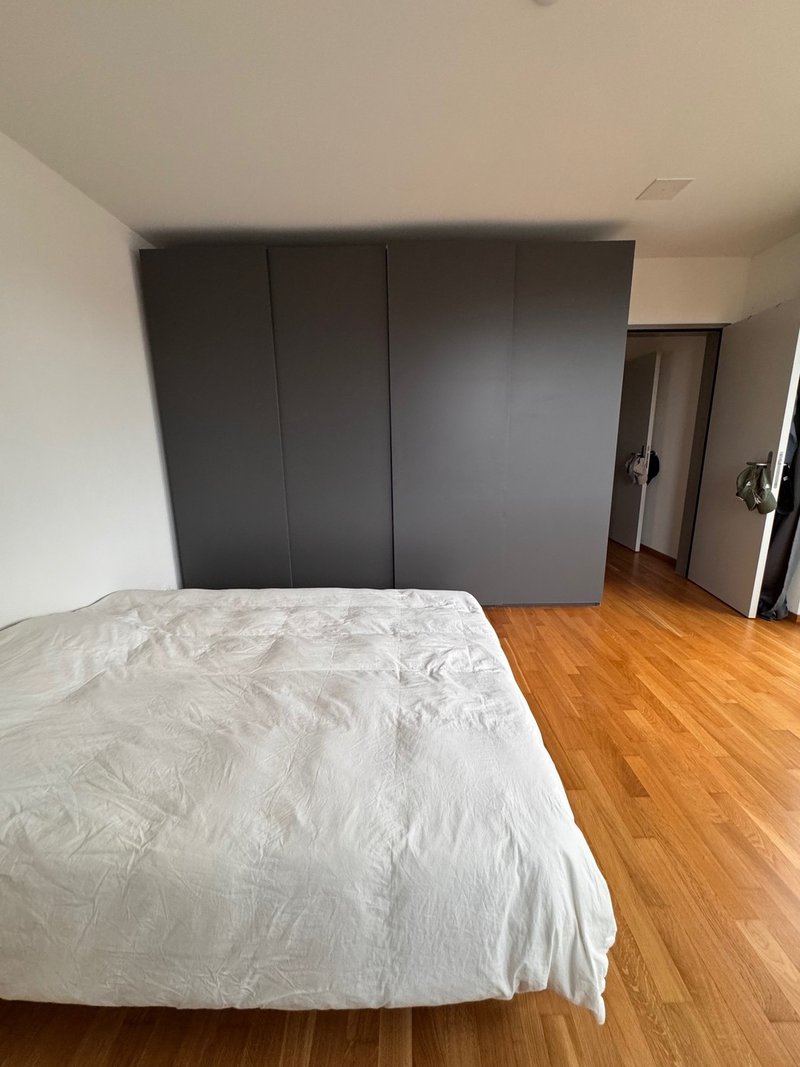 Im Schlafzimmer befindet sich ein sehr grosser, raumhoher Kleiderschrank mit viel Stauraum.
