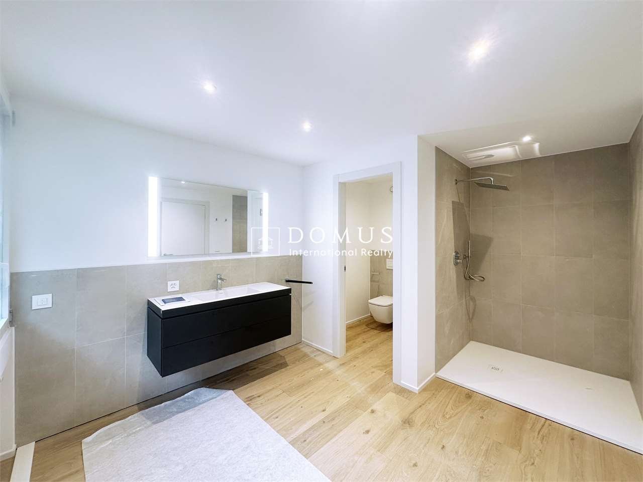 La zona notte offre una camera matrimoniale con bagno en suite dotato di doccia e una cabina armadio, una seconda camera dalle dimensioni generose con bagno con doccia, una terza camera spaziosa e un ulteriore bagno ospiti con doccia. Completa labitazione un comodo locale lavanderia interno, elemento di grande praticità nella gestione quotidiana.
