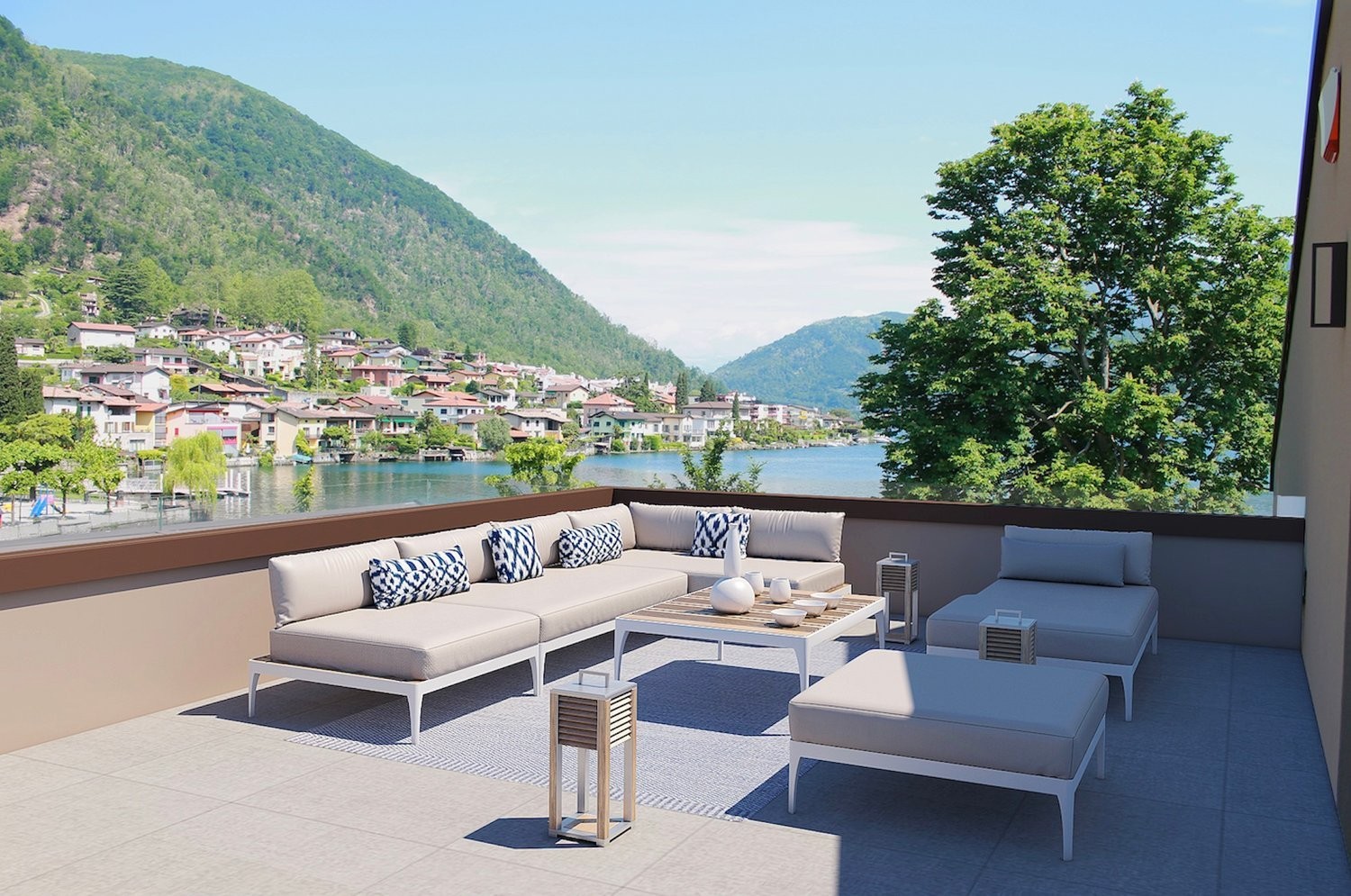 Ogni unità gode di un doppio affaccio a tutti i piani, con giardini privati e/o terrazze panoramiche con vista sul lago.