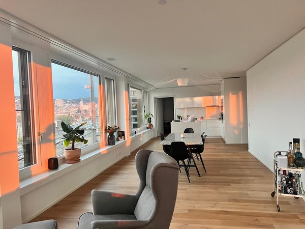 Entdecken Sie diese grosszügige 4.5-Zimmer-Wohnung im 10. Stock eines modernen Neubaus von 2020 am Robert-Stephenson-Weg in Zürich. Mit 150 m² Wohnfläche und einem atemberaubenden Stadtblick bietet diese Wohnung höchsten Wohnkomfort an der Europaallee, in unmittelbarer Nähe zum Hauptbahnhof.